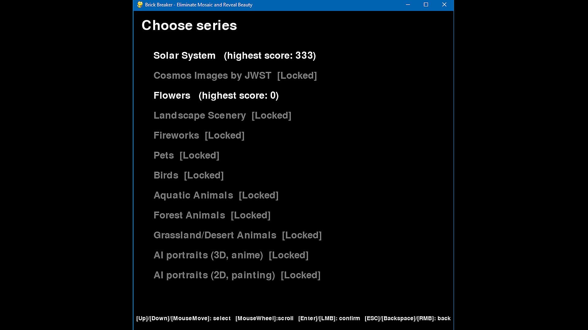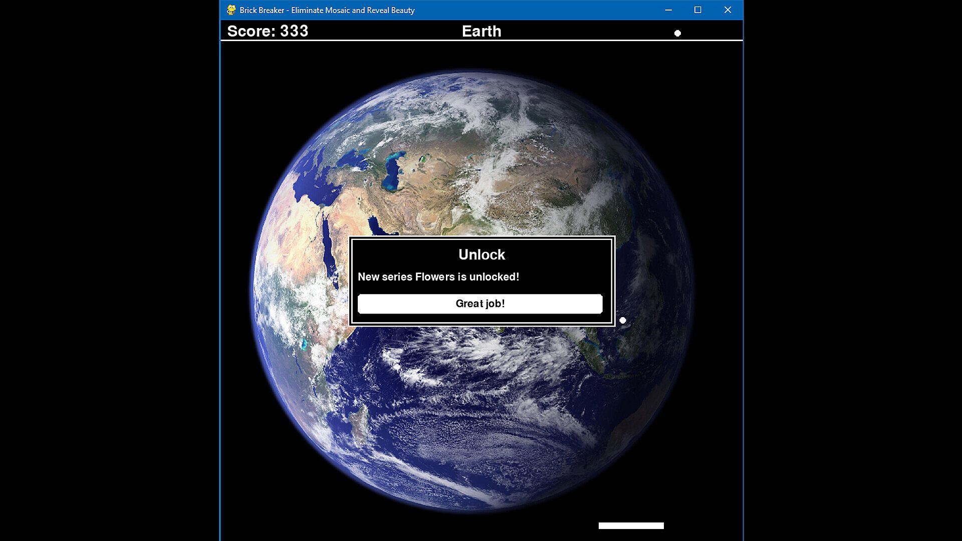Brick Breaker: Eliminate Mosaic and Reveal Beauty is a fresh take on the classic brick-breaking arcade game, blending engaging gameplay with a visually rewarding experience. Every brick is a piece of a digital mosaic obscuring a stunning hidden image. Break the bricks to gradually unveil breathtaking pictures across various themed Series. This is my first game, developed with the help of ChatGPT, making it a special project that combines creativity, technology, and interactive fun.