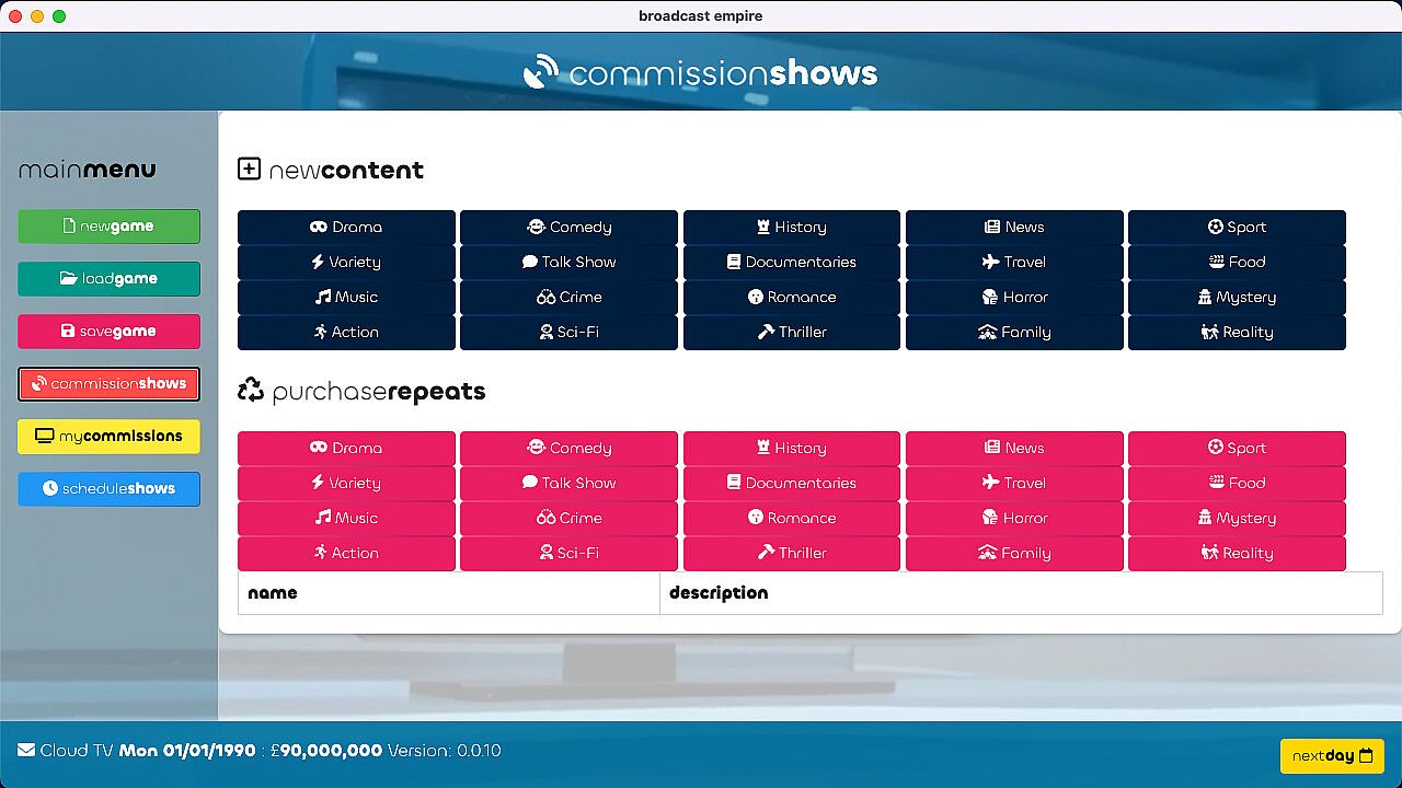 Engage in fierce competition against rival networks as you battle for viewership supremacy. Watch the ratings soar (or plummet) in real-time as you make critical decisions that can make or break your studio's success.Do you have what it takes to revolutionise the television landscape and build a media empire that will stand the test of time? The spotlight is yours – seize it and become the biggest player on the box!Get ready for sleepless nights, nail-biting decisions, and the sweet taste of victory as you fight your way to the top of the ratings. Your journey to TV stardom begins now!