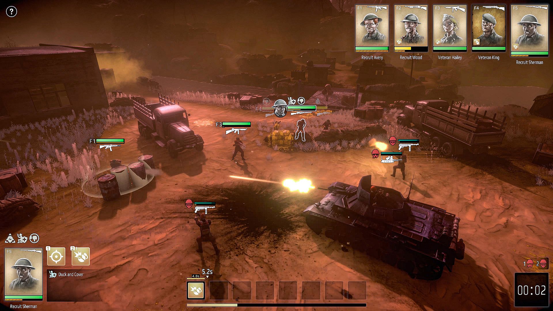 • Booze and guns. The more your soldiers drink, the more perks and abilities they get.