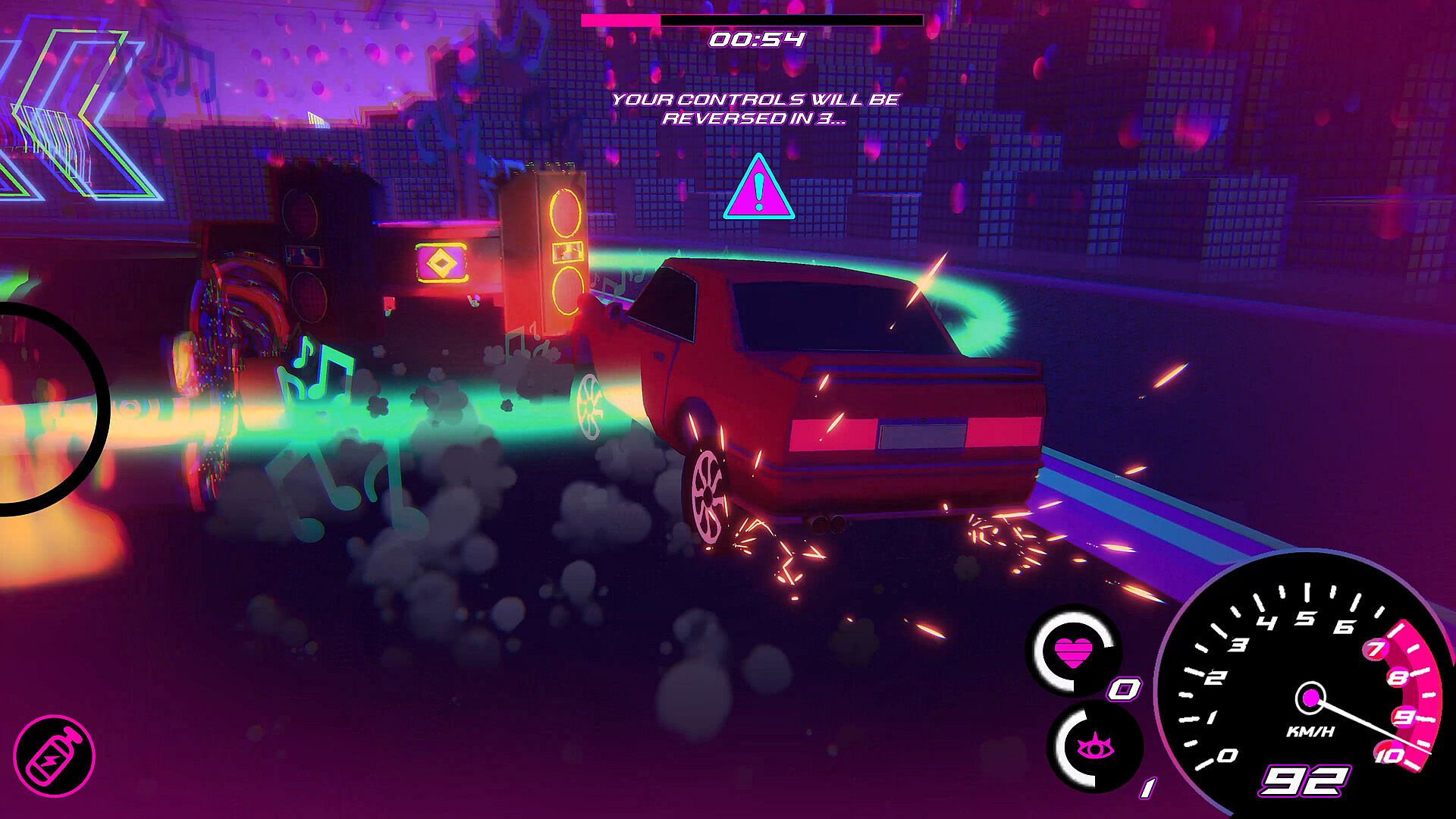 During each race, you’ll pick up upgrades that unlock unique abilities, manage your energy, and make decisions that affect both your car’s performance and your perception of the world around you.