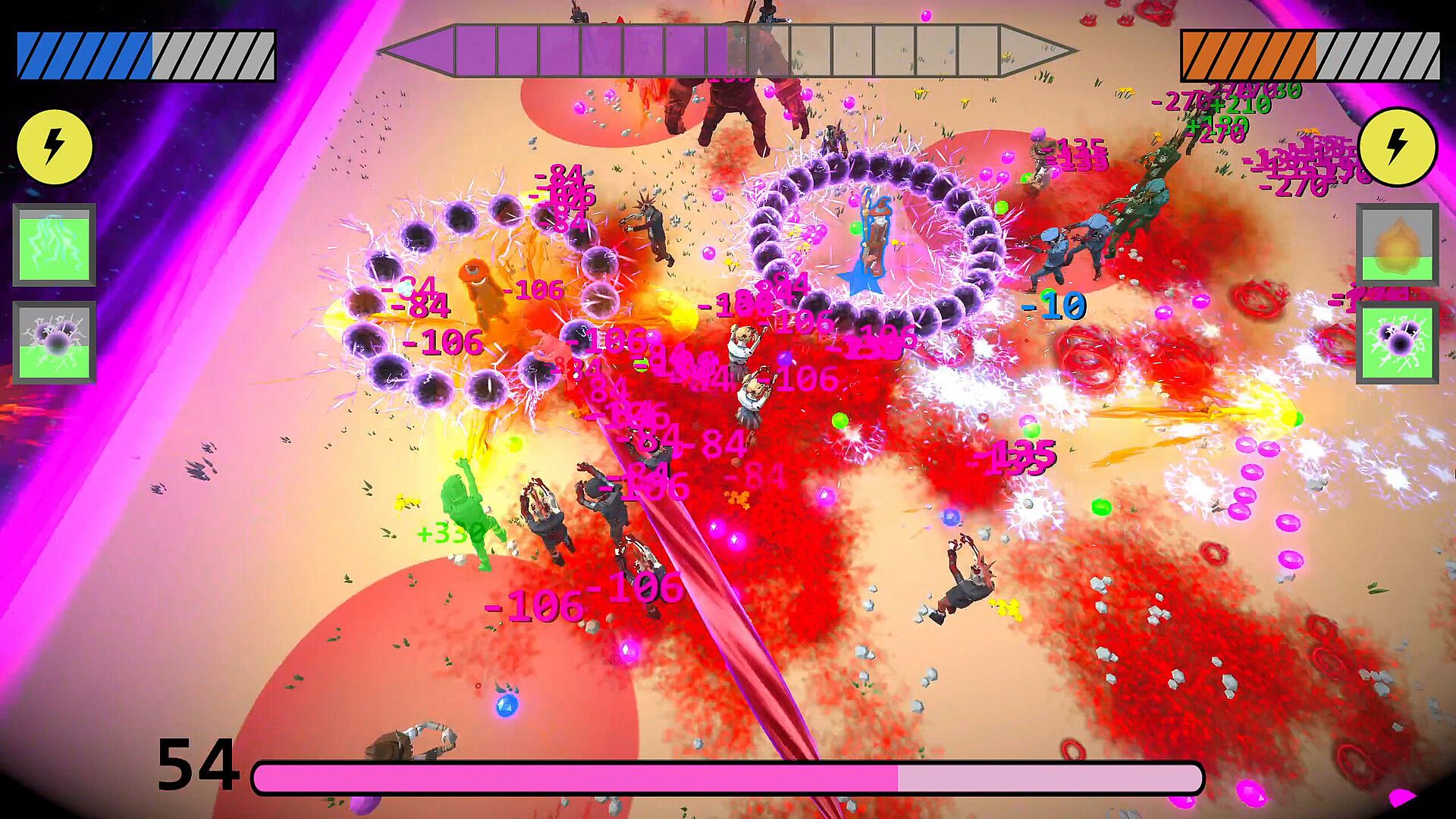 Bros Survivors is a 2-player co-op action roguelite where you and your friend must coordinate to survive hordes of zombies, orcs, golems, aliens, robots, and more. Combine powers, annoy each other, or fuse into a single entity to overcome every challenge.