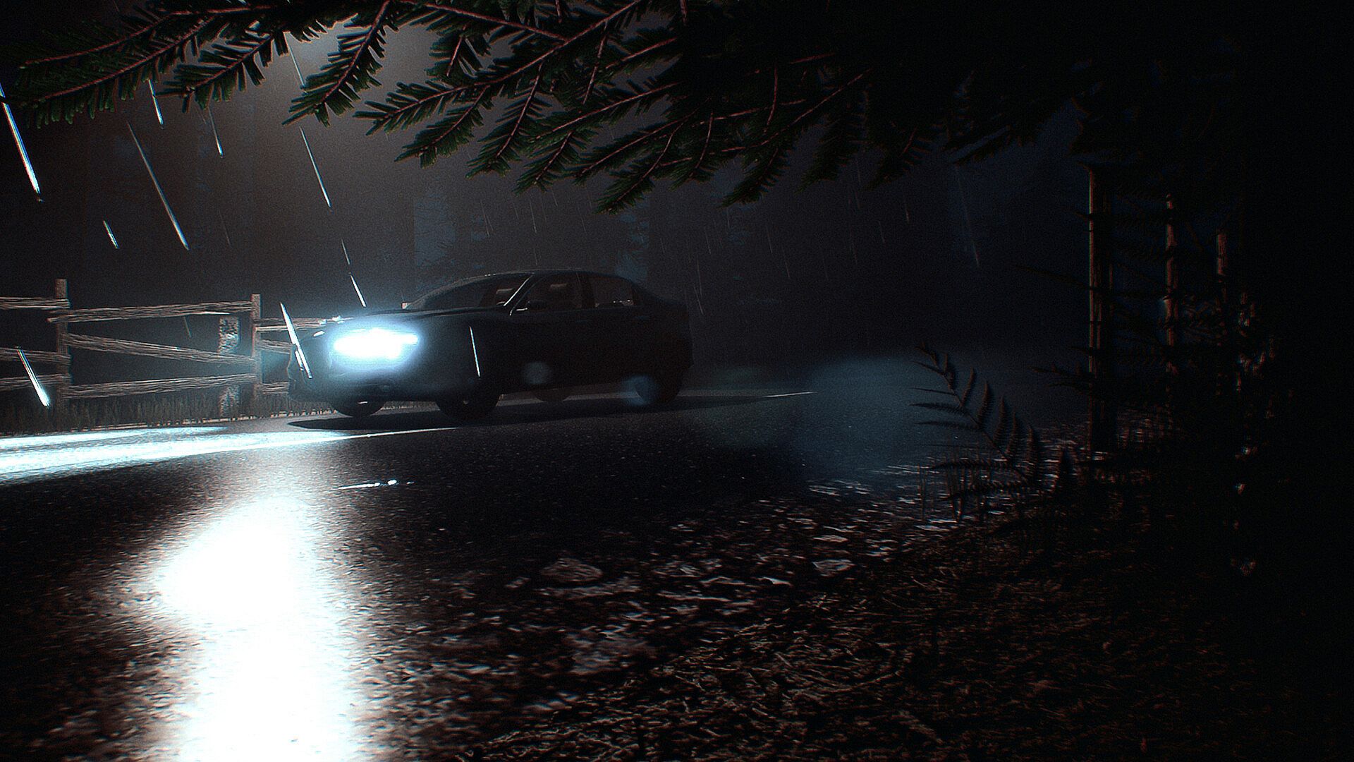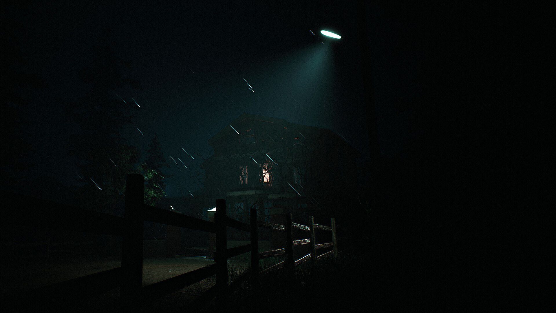A nighttime road through endless fields leads you to a private estate deep within a dying forest. A sudden storm, a deer in the headlights, a crash, a stalled engine — and a single house glowing in the darkness. With no signal, no help, and nowhere else to go, you step inside. The gate slams shut behind you. That’s when everything goes wrong.