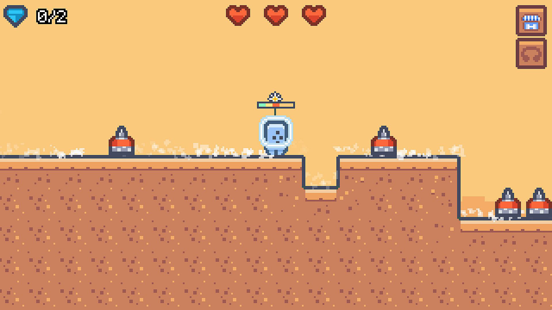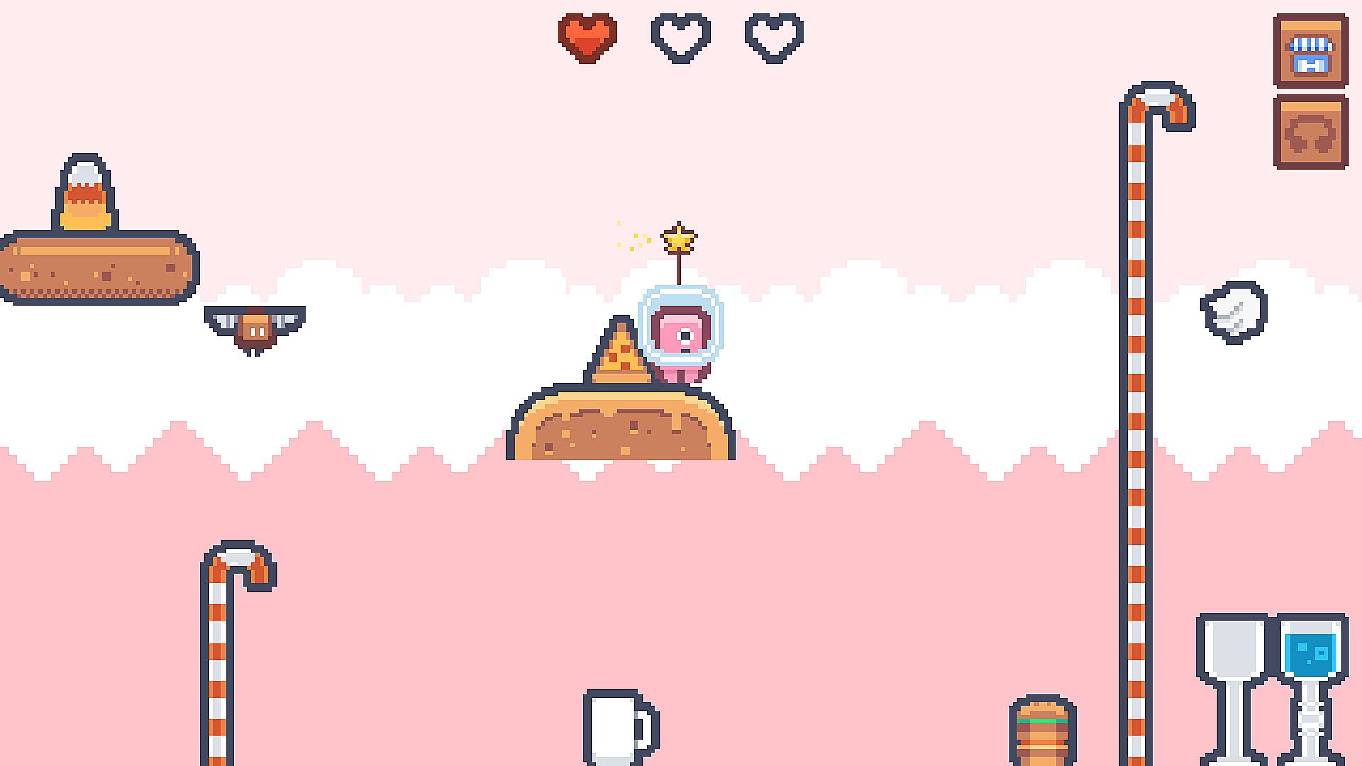This is a simple and casual 2D platformer game with cute, brightly colored pixel graphics.