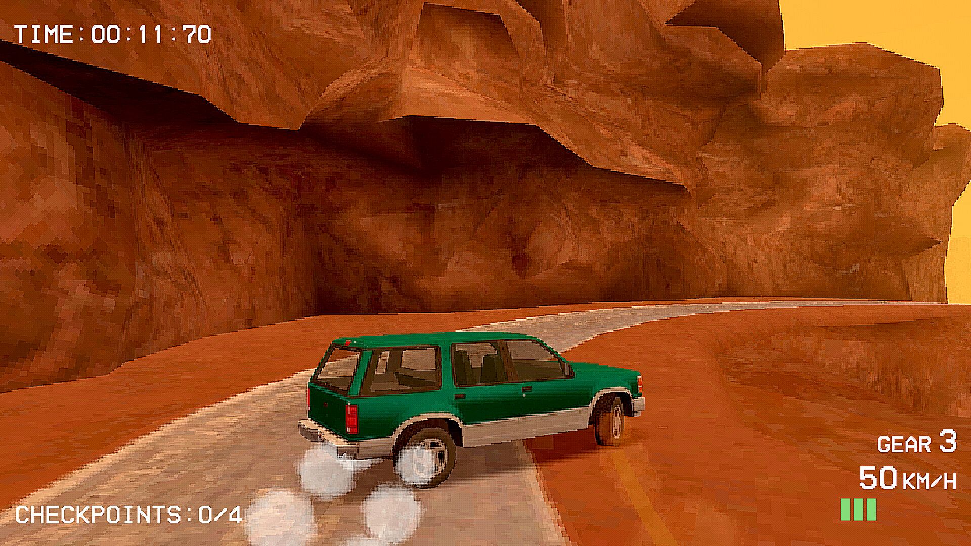 You know how a lot of racing games feel like you are driving on a perfectly smooth surface at all times? Budget Rally has detailed suspension simulation to make tossing around that big old wagon more engaging!