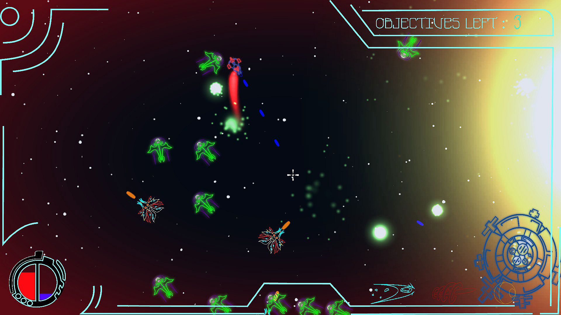 Players pilot a ship in this top-down space shooter to fend off waves of alien space bugs invading the solar system. Travel across the solar system to reclaim fallen stations amid the conflict, wielding three unique weapon types against three distinct enemy varieties. Objective-based gameplay ramps up with difficulty scaling, arcade-like controls, and an engaging boss encounter. This free to play action game suits fans of tight, challenge-driven shooters that demand quick reflexes and strategic weapon choices.