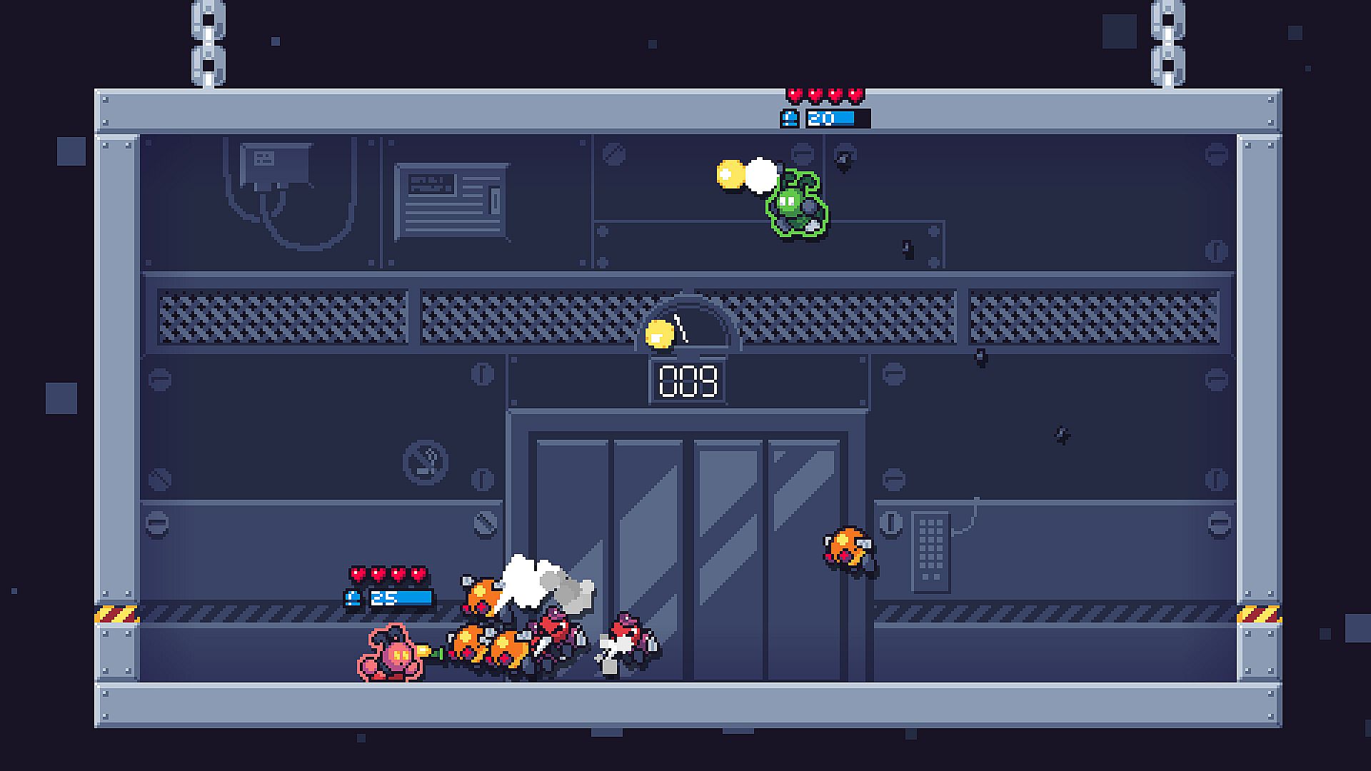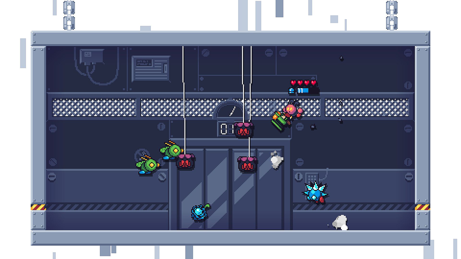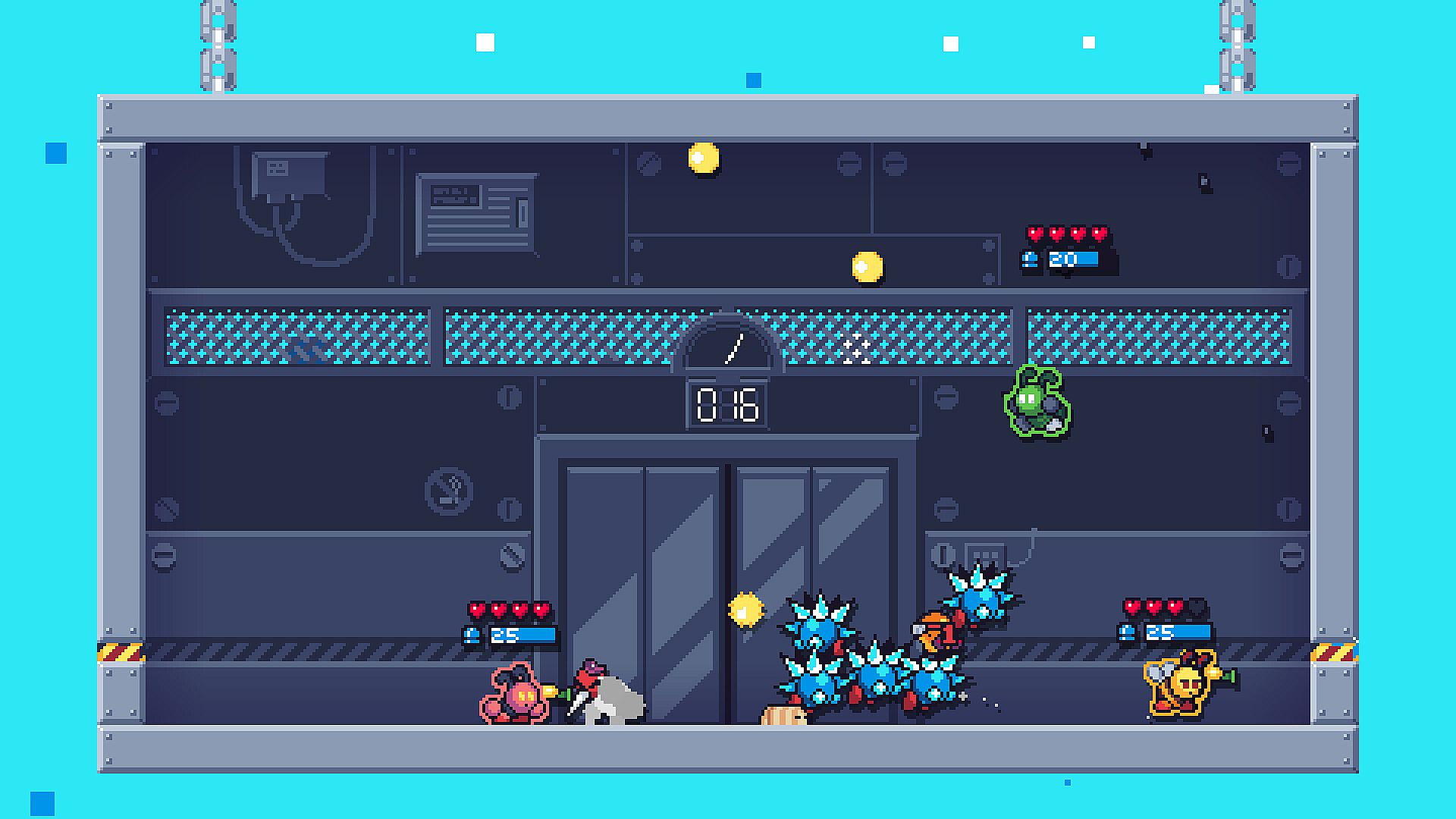 Bugscraper is a solo or co-op roguelike shooter. As you climb toward your tyrannical boss’s office, you’ll battle floor after floor of enemies. Using a wide arsenal of weapons and upgrades, mow them down and aim for the top!