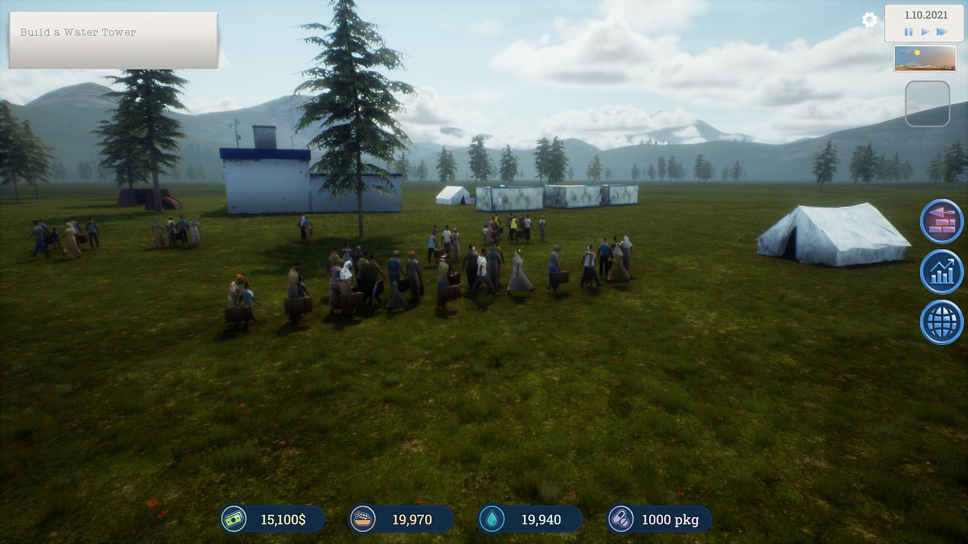 Everyone needs shelter. You can build relatively comfortable container houses for refugees (if you can raise enough donations!), or you can opt for tents. Maybe you don't bother with that and the refugees build their own shelters? The decision is yours, you are the manager.