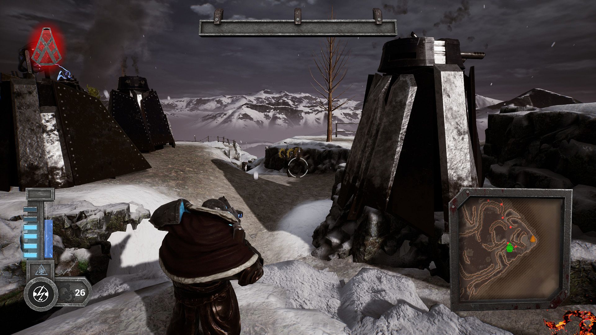 In the world of Bulkhead, you take control of a hulking, armor-clad Soldier. For reasons unknown, his sole purpose is to protect the Girl with which he travels. The Soldier and the Girl are inseparable, but this world is cruel. Along their travels, the Girl falls into a trap. Unable to free her, the Soldier watches helplessly as a transmission beacon shoots into the dark sky. It turns out the pair were running from something.