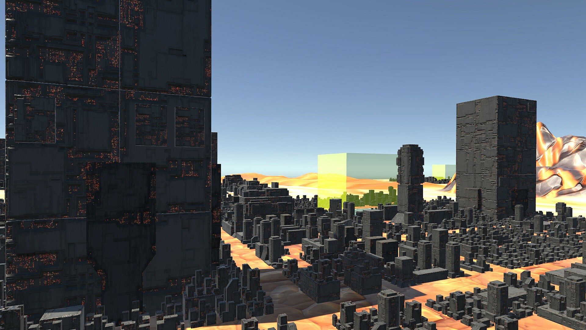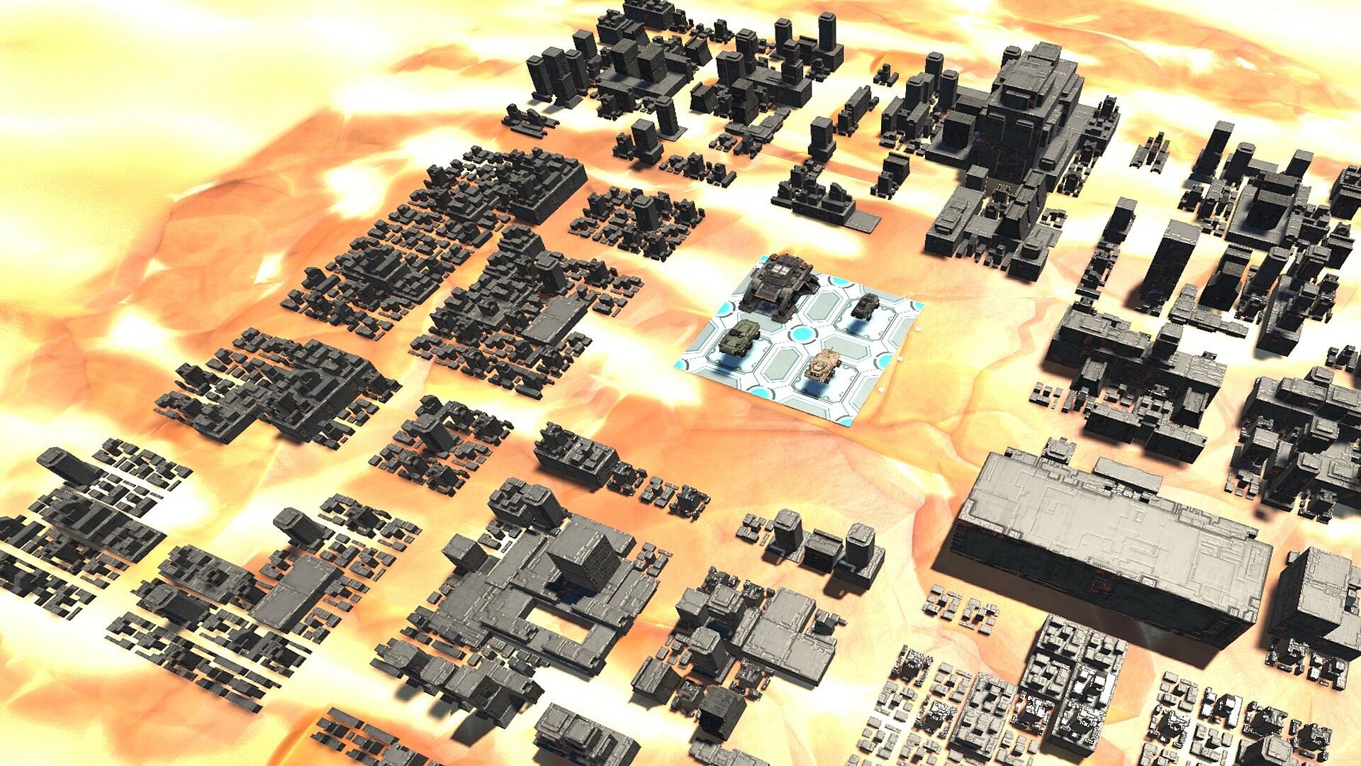 Unlike classic RTS games with free base building, Bull3000VRTS features yellow boxes, typically found in cities, that must be activated with logistics units. Players can then choose a building to construct in that specific slot. This innovative approach encourages and rewards map control and strategic contesting of areas with building slots.