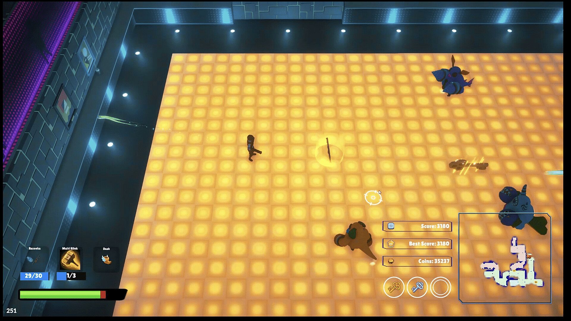 With fast-paced combat, elemental weaponry, and a procedurally generated battlefield, no two runs are ever the same. Whether you’re fighting solo or teaming up with up to 4 friends in local co-op, Bullet Blasters will test your reflexes, strategy, and mastery over the elements.
