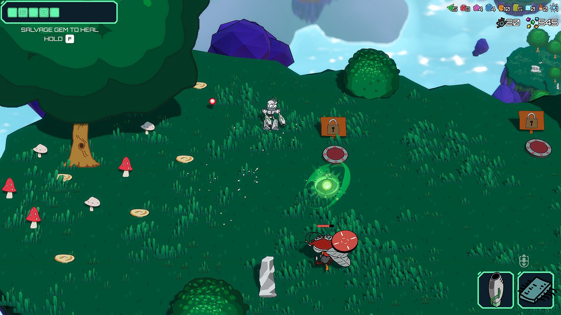 On the Bullet Express, gems aren't just loot, they are your firepower. Every gem you find transforms your scrap starting weapon into something new. Slot a Spread Gem for shotgun blasts, or a Charge Gem for devastating charged strikes.