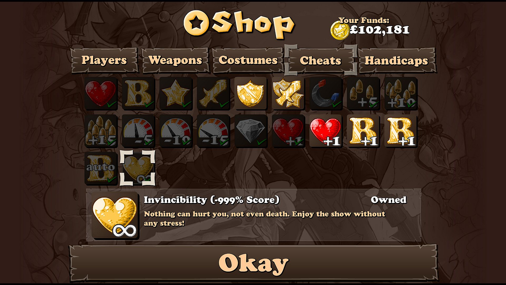 • 3 difficulties: Normal (25% bullets), Hard (50% bullets), and Heavenly (100% bullets).
