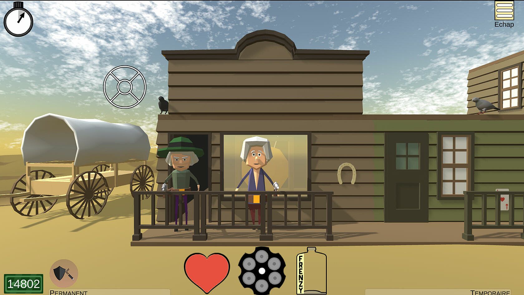 In the distant days of the Wild West, cow-boys were quick to jump the gun. Yet those who survived were not the fastest ones, but the ones who took the time to aim carefully. Will you manage to keep your cool and shoot your way to the final boss through wave after wave of bandits?