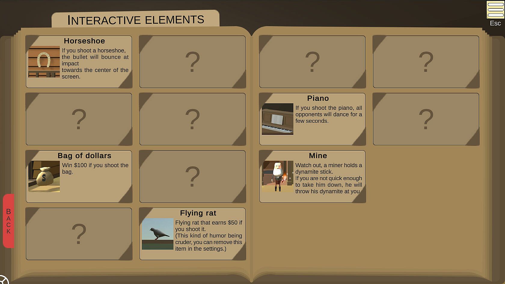• Lots of interactive items: Take advantage of opportunities offered by background objects (gong that stuns your foes, horseshoe making the bullets ricochet around…).
