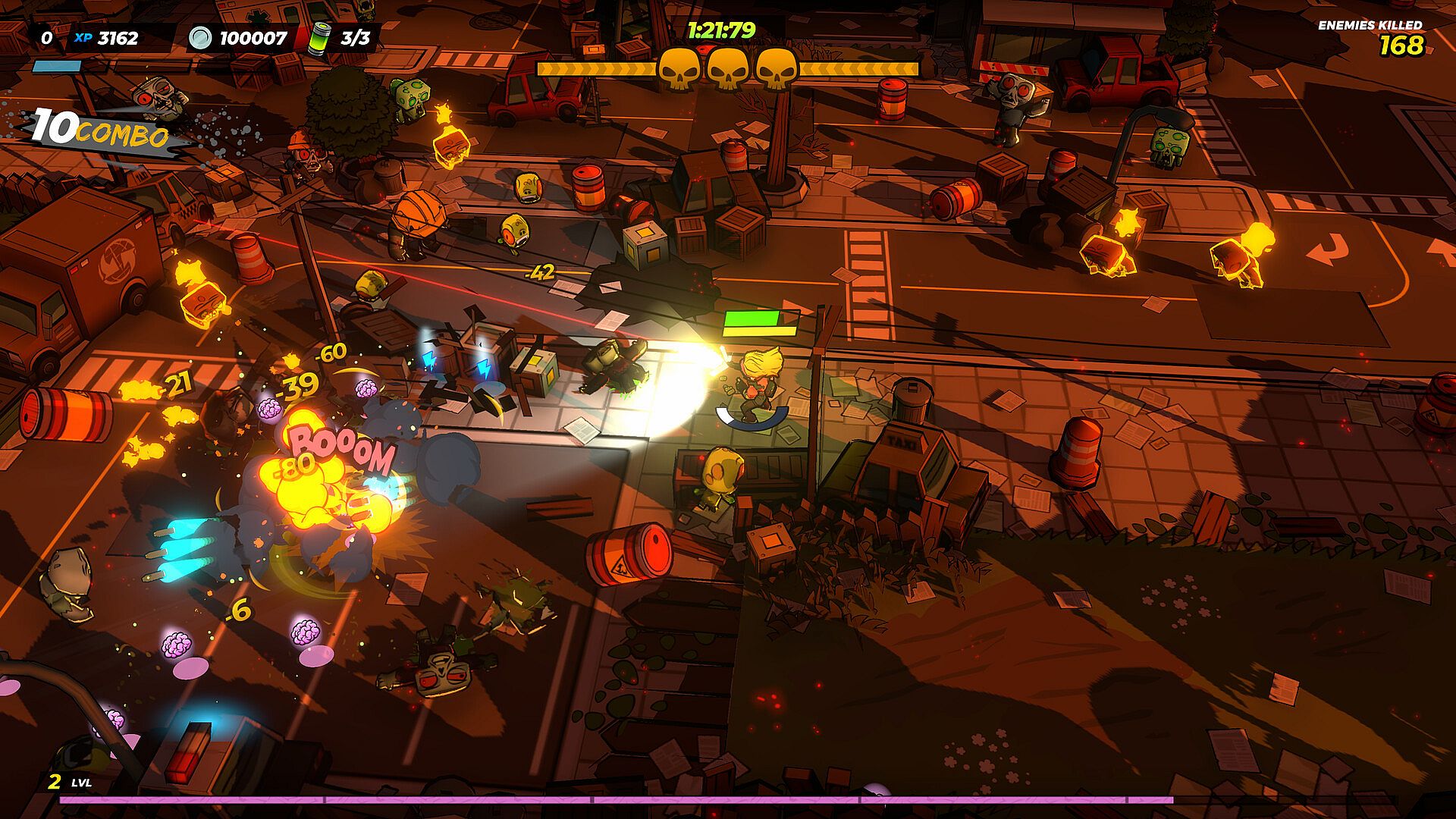 ● Collect brains in order to level up and energy that grants powerful abilities, allowing you to unleash devastating attacks.