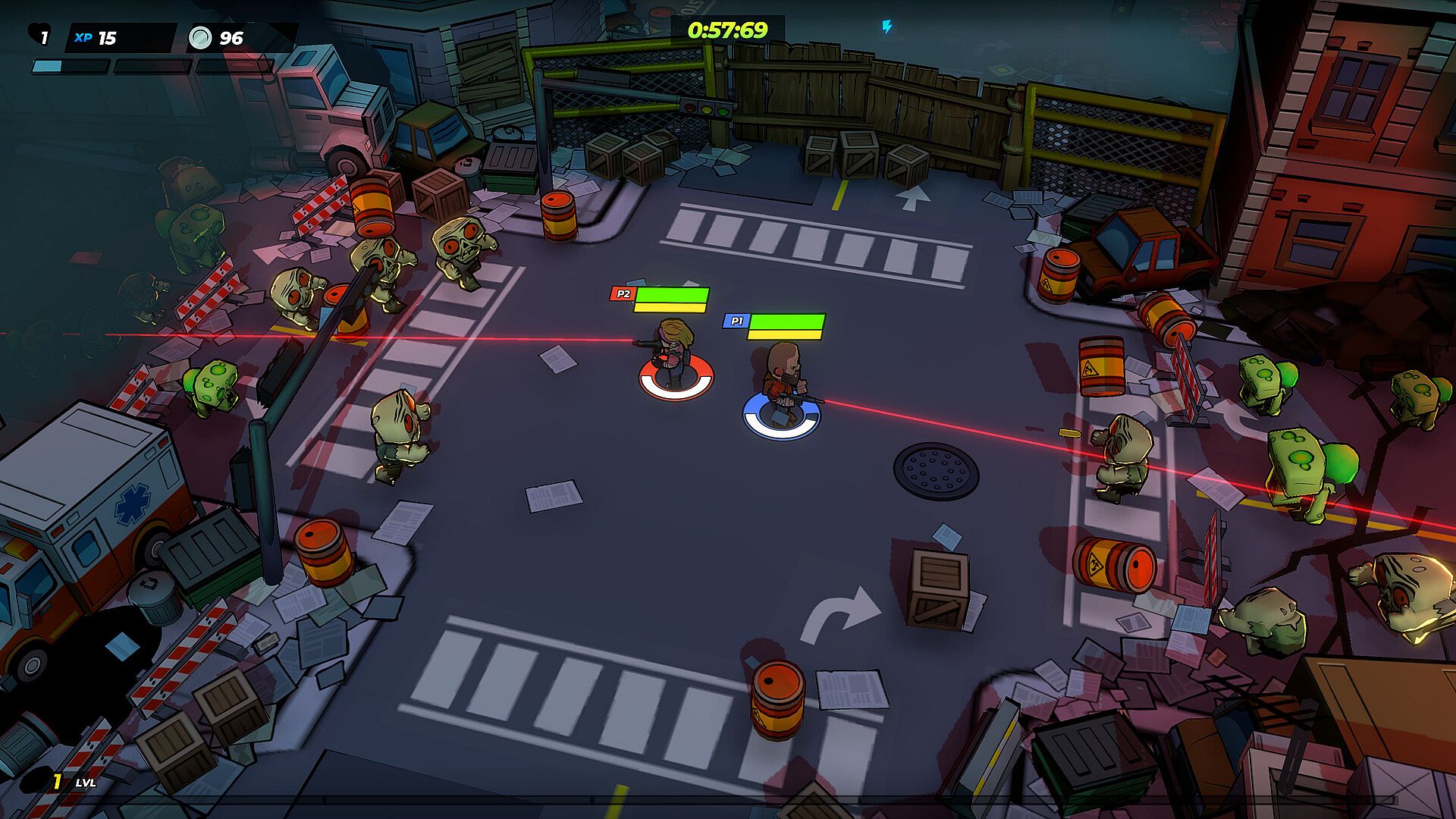● Engage in intense top-down 3D shooter combat against never-ending hordes of brain-hungry zombies.