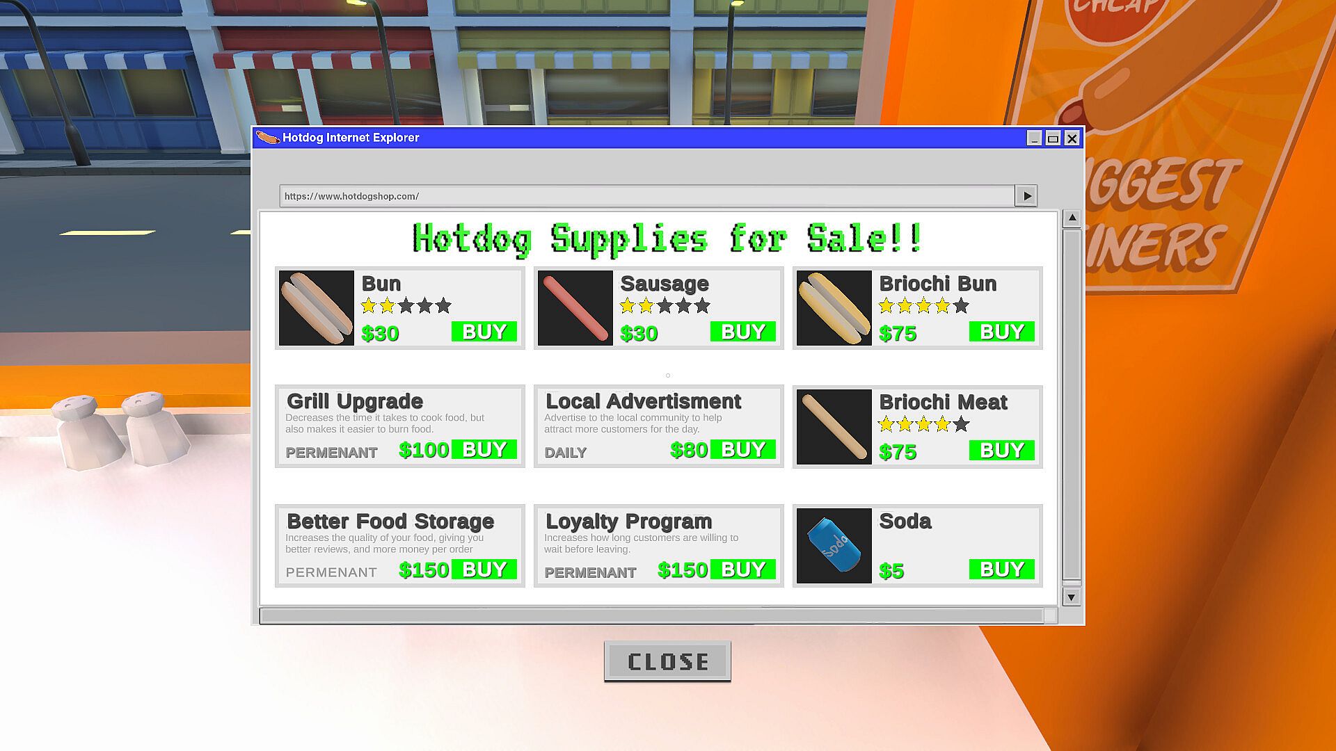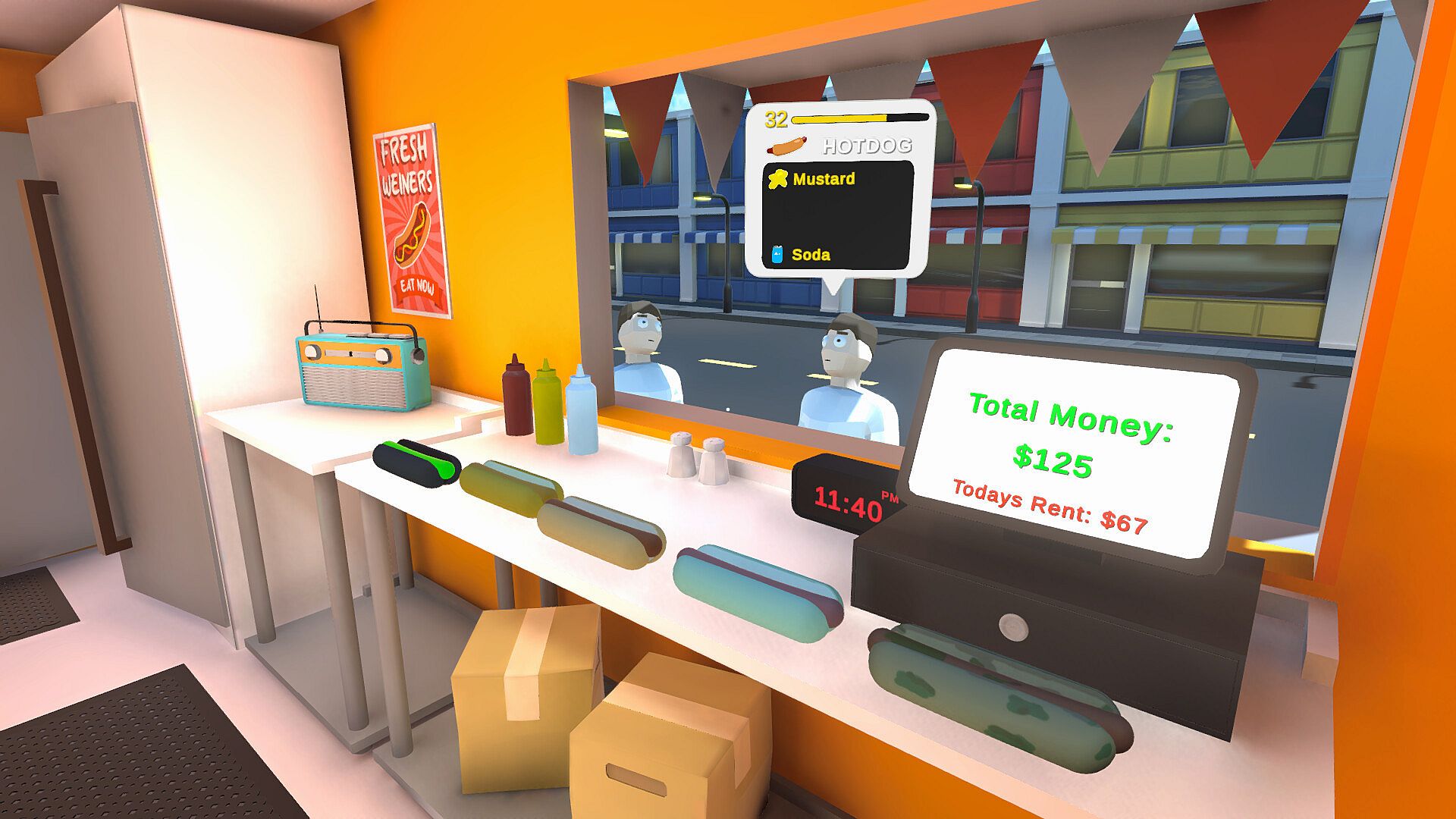 You just got fired. Now you run a hotdog stand in the backstreets of the city. Start small with a single grill and a few toppings, then survive each day by serving customers quickly, keeping orders correct, and making enough money to pay rent. As business grows, so do expectations - more customers, tighter timers, and bigger consequences for mistakes. Upgrade your stand, unlock new foods, and expand your menu while deciding how honest you want your operation to be. Some opportunities help you grow. Others just help you stay open.