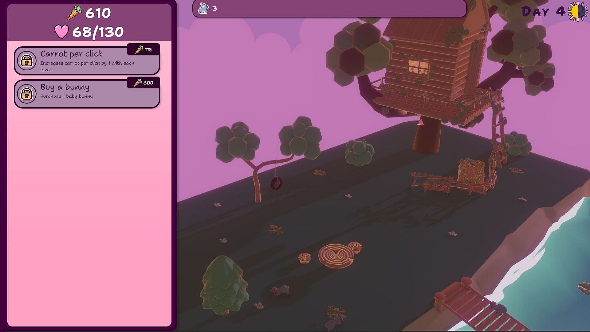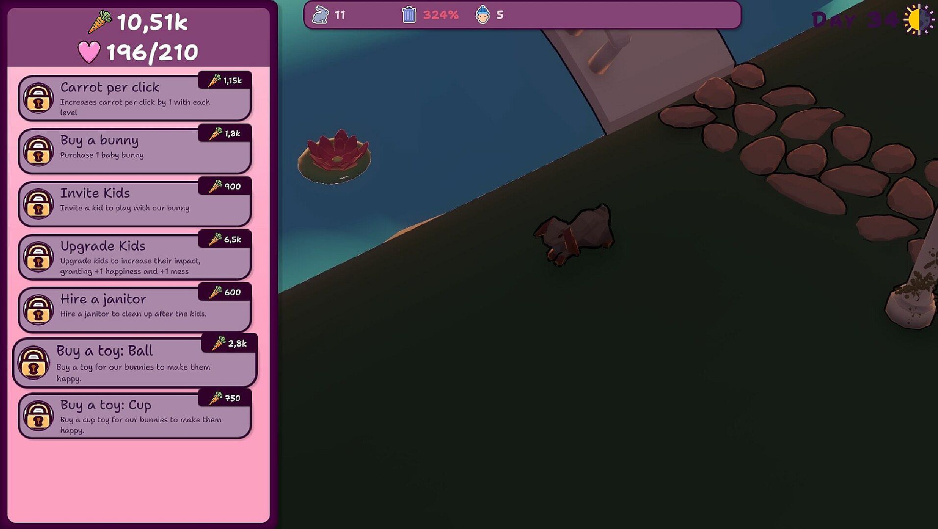 You can invite kids to help you collect carrots, but be careful, they leave a mess behind, and that makes the bunnies unhappy. You can always clean the mess or make toys out of it! But for that...you need to upgrade your farm.
