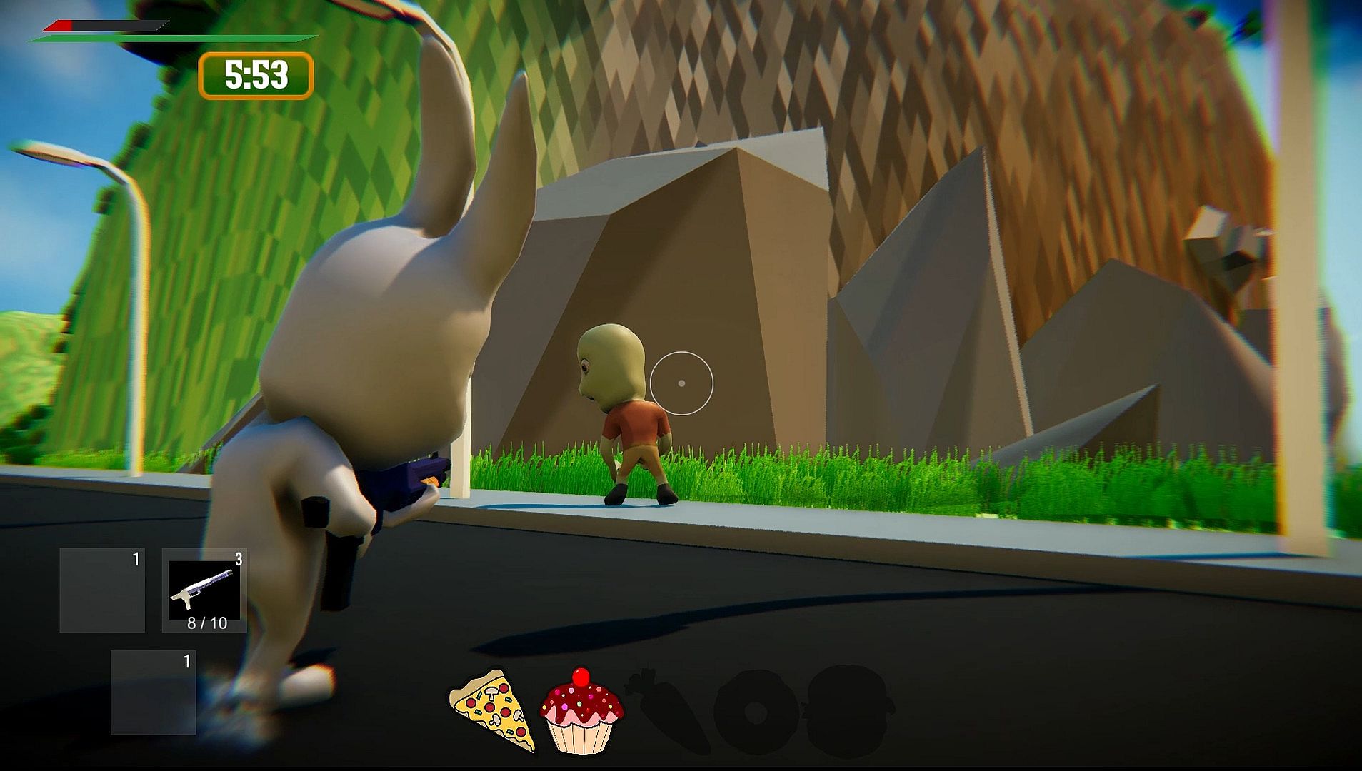 Save the town of a zombie infestation being a bunny equiped with a lot of weapons and ready for destruction. He doesn't fear anything, loves to explode things and he's still cute. You are going to be able to solve this situation, aren't you? Or does this mystery is hiding more than it seems? Play now this new game, constantly updated with new maps, enemies and game modes!