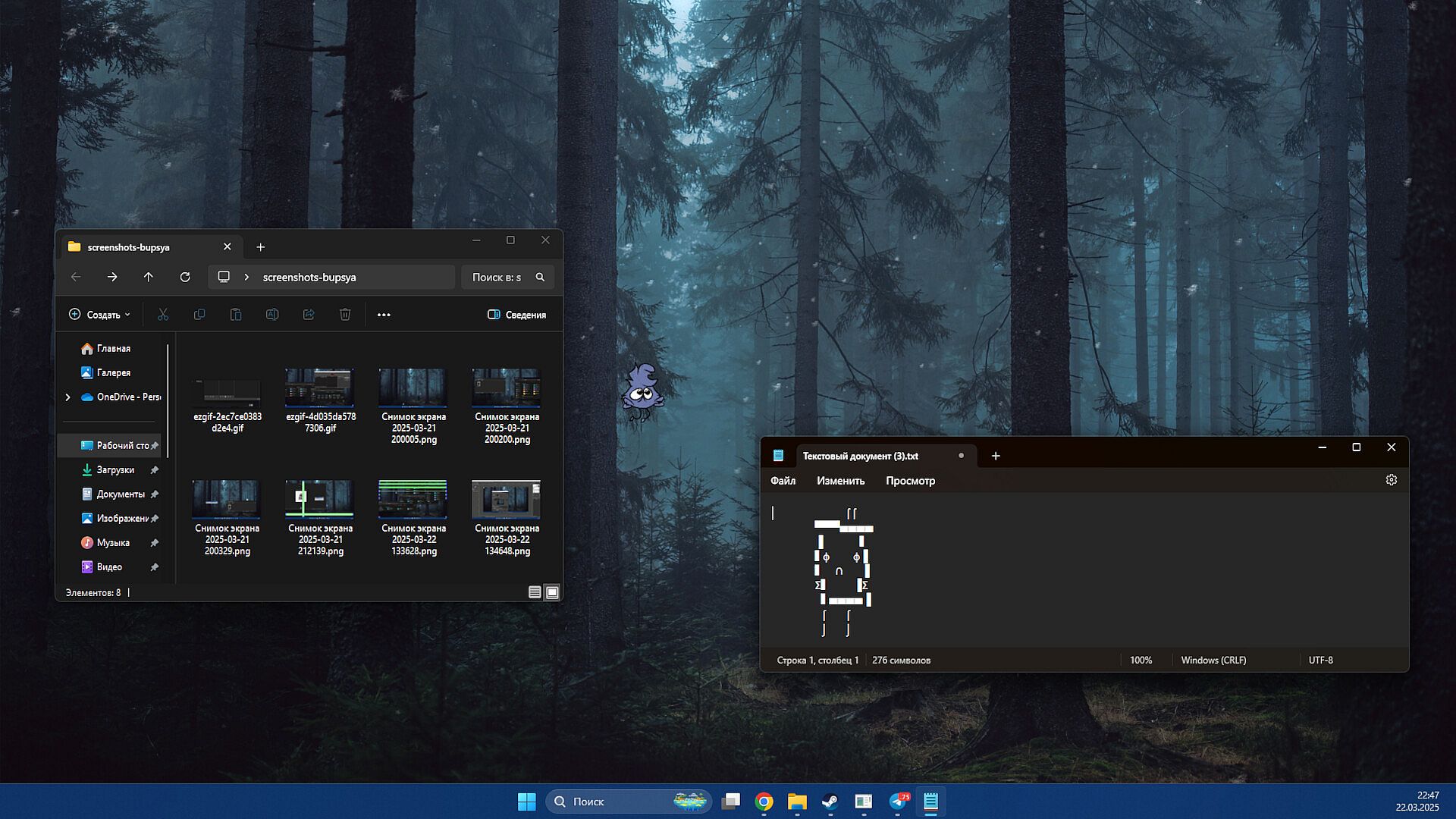 Bupsya is a desktop sticker featuring a fun mini-game. It acts like a platformer character, hopping across your open windows as it chases the cursor, yet never quite reaching it. What could it be feeling towards the cursor?