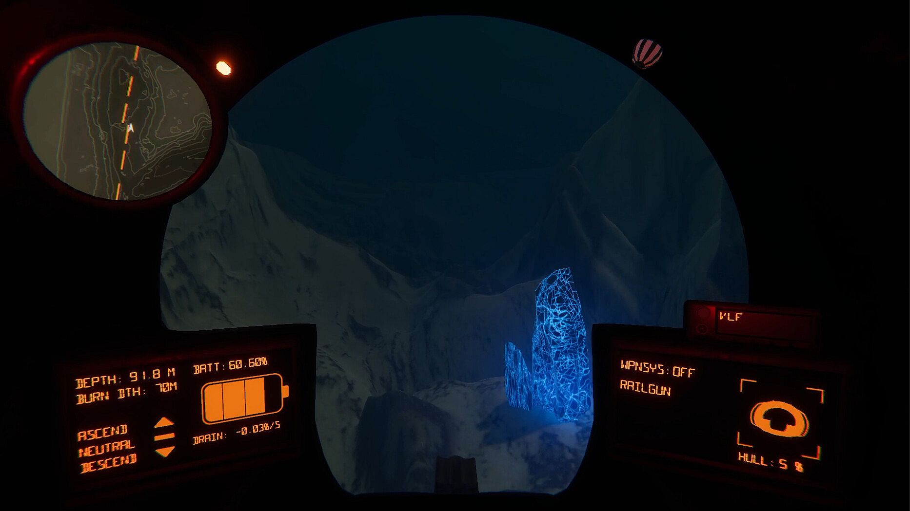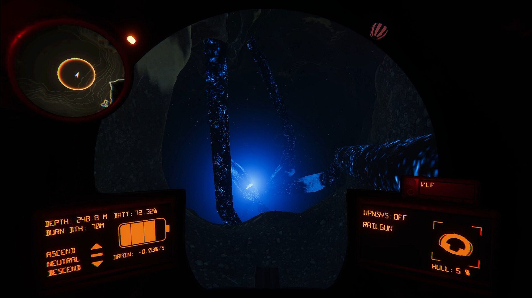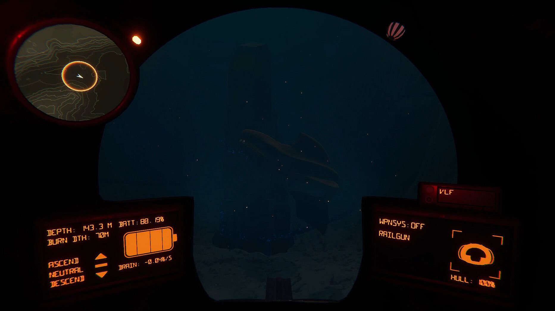 You’ll be equipped with a variety of instruments, each of which will grant you either greater awareness of your surroundings or safety, but each use will further drain your dwindling battery. Manage your resources lest you be stranded in the deep.