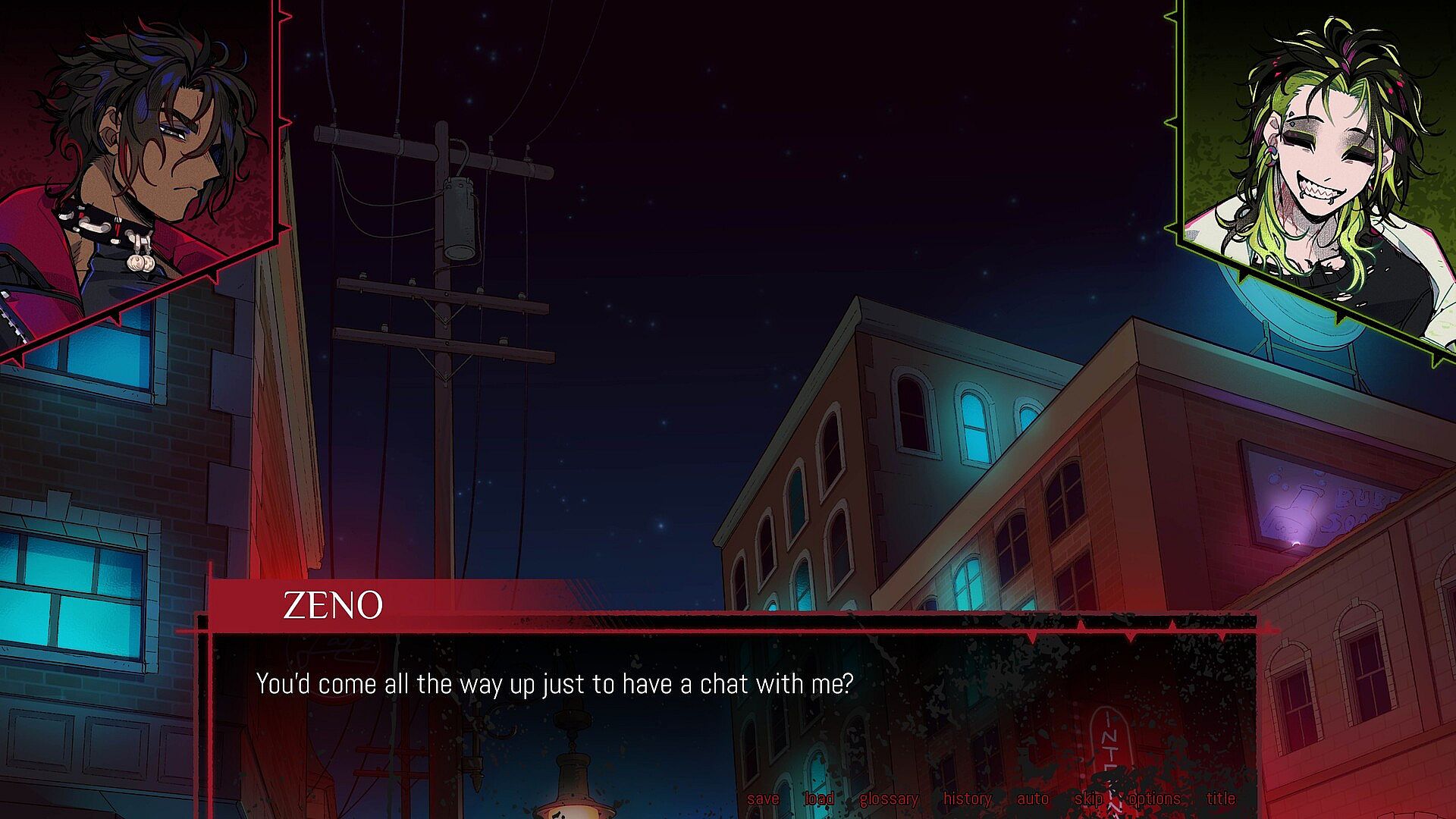 Burn the Midnight Oil is a supernatural neon-noir romance visual novel about monsters, love, and other horrors.