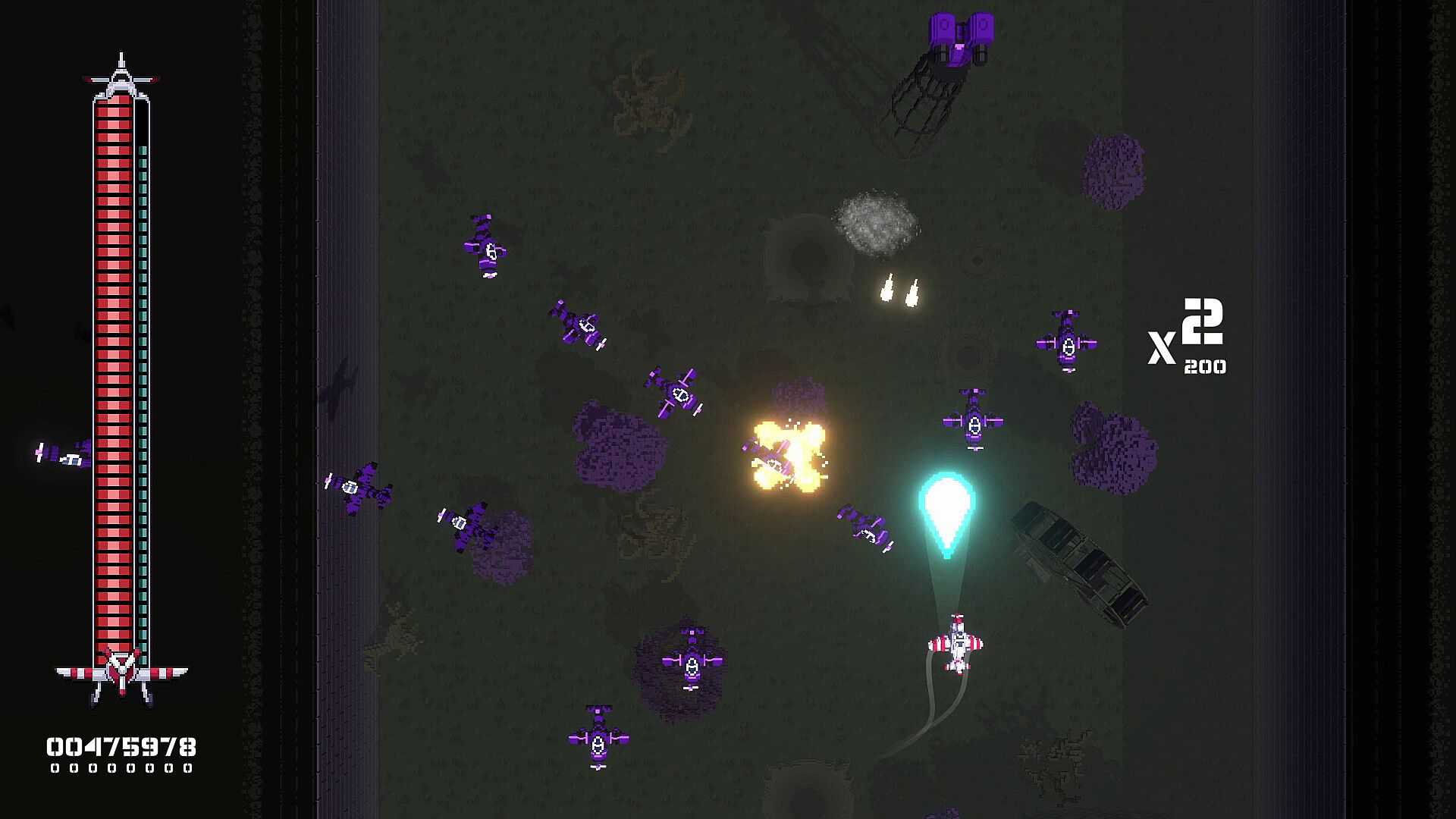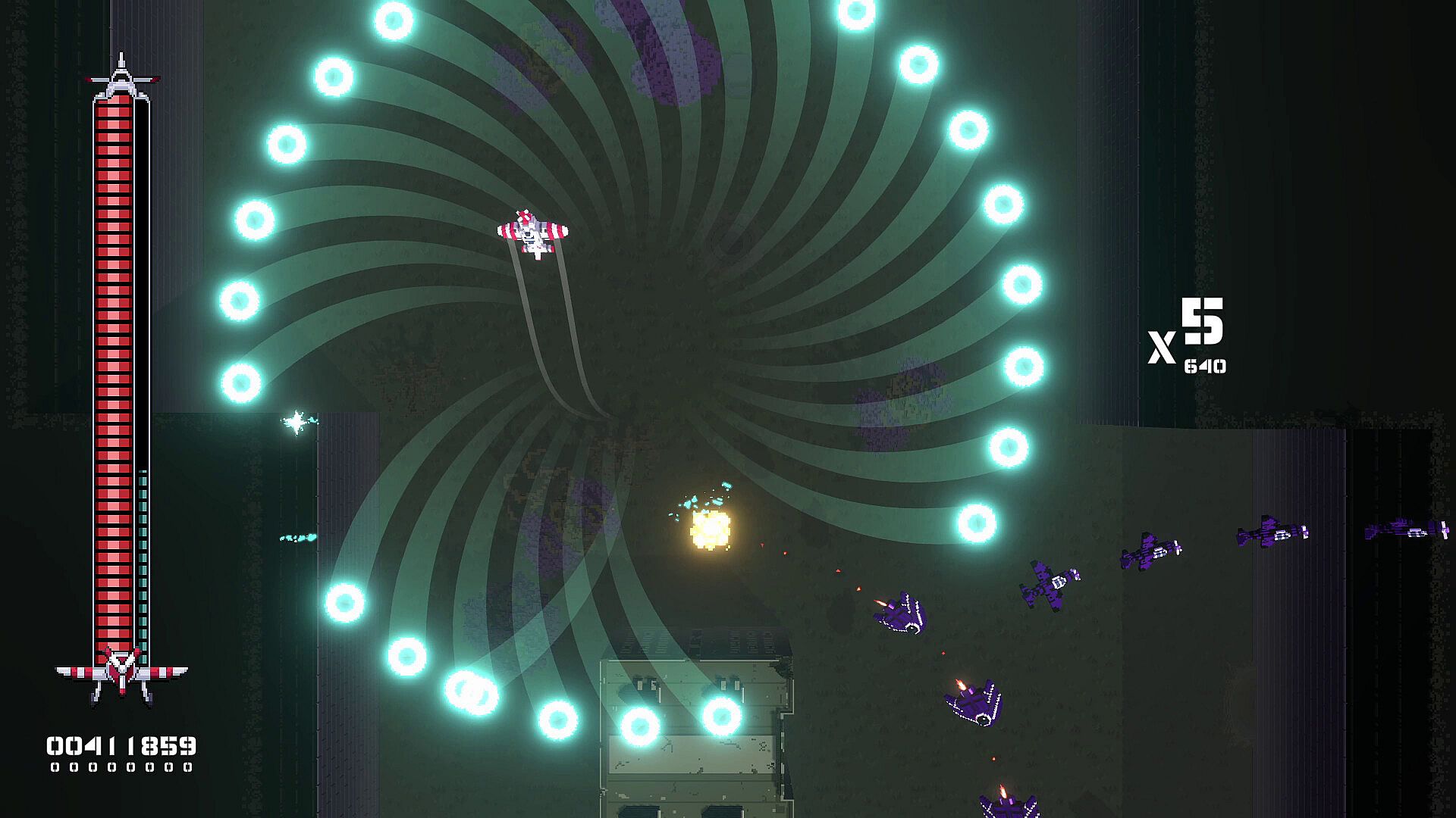 Perfect to play when you need just a shot of quick fun! This is a short and free love letter to the 80s arcade games. Inspired by classics like 1942, River Raid, Raiden and more.