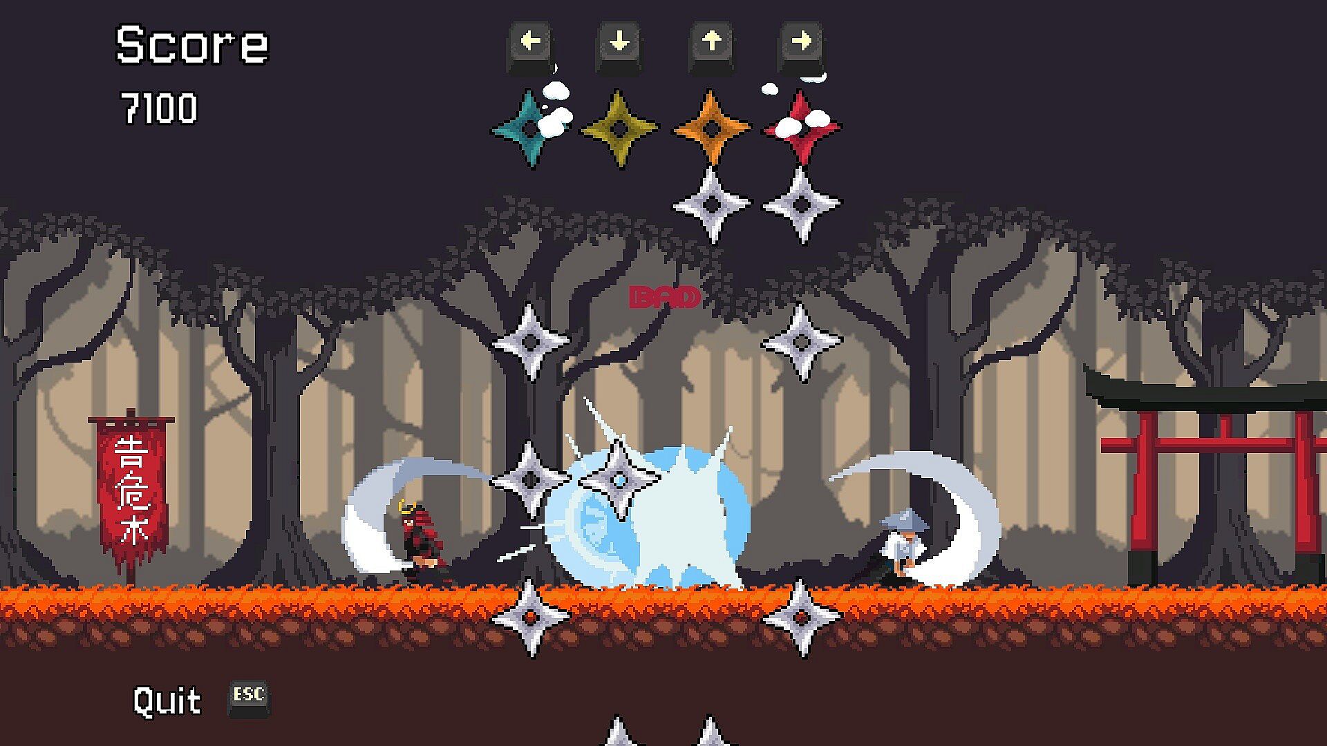 Bushidon't is a tight, skill-first 4-lane rhythm game where pixel samurai clash to your timing. Feel every slice with responsive inputs and charts designed for clarity and mastery.