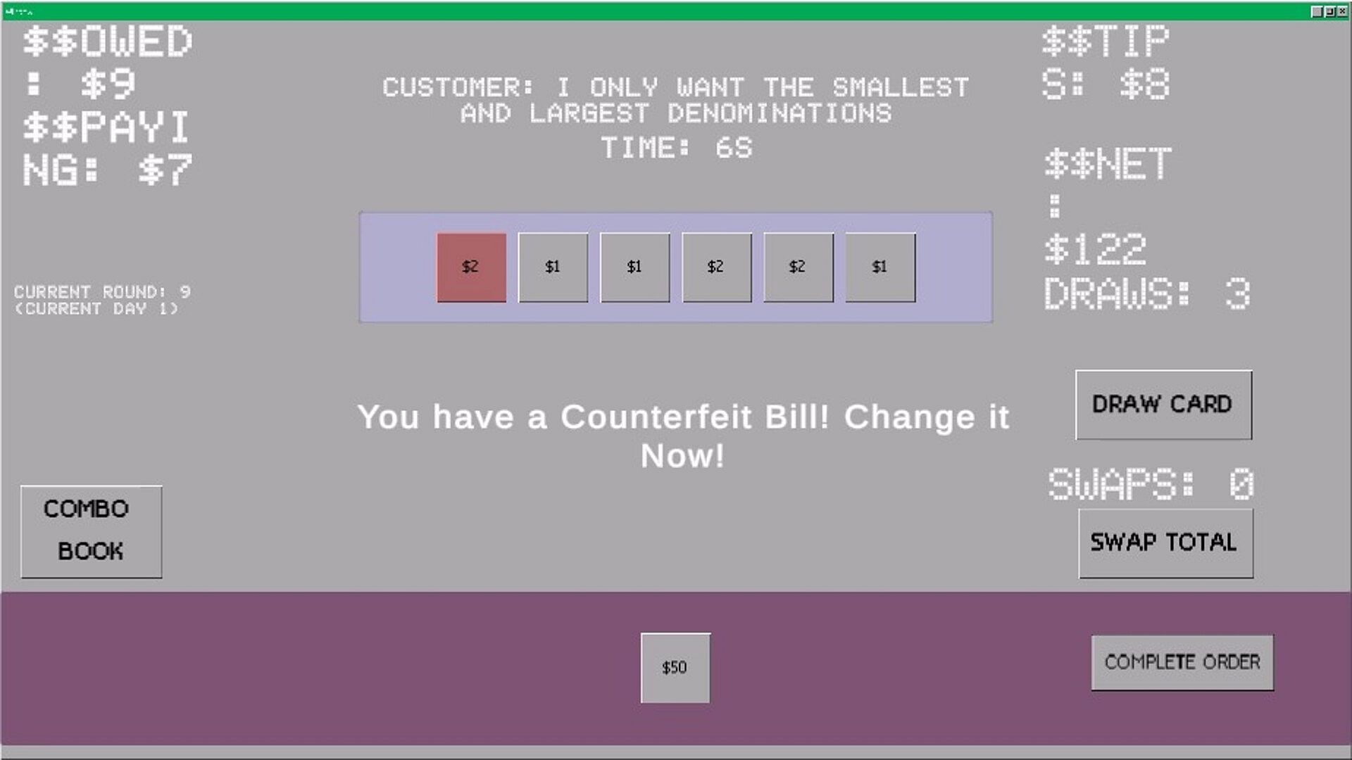 Upgrade by purchasing and selling bills and specials each day to strategize the best way to win!