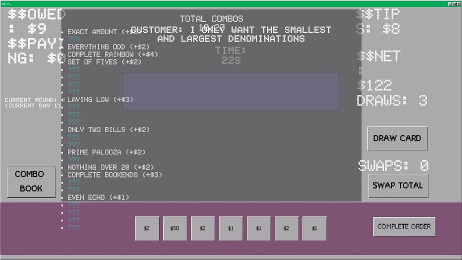 Business 98 is a Roguelike Deckbuilder/Business Simulator about being a cashier in 1998 processing payments, while managing company goals. Its an arcade machine mixed with a business simulator!