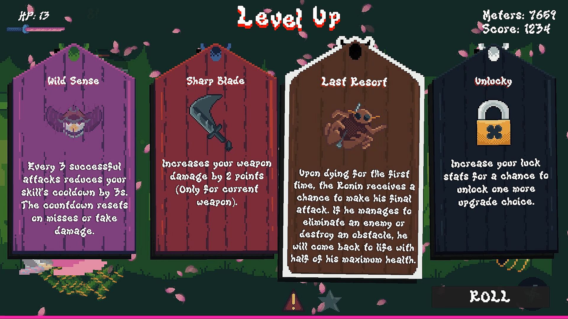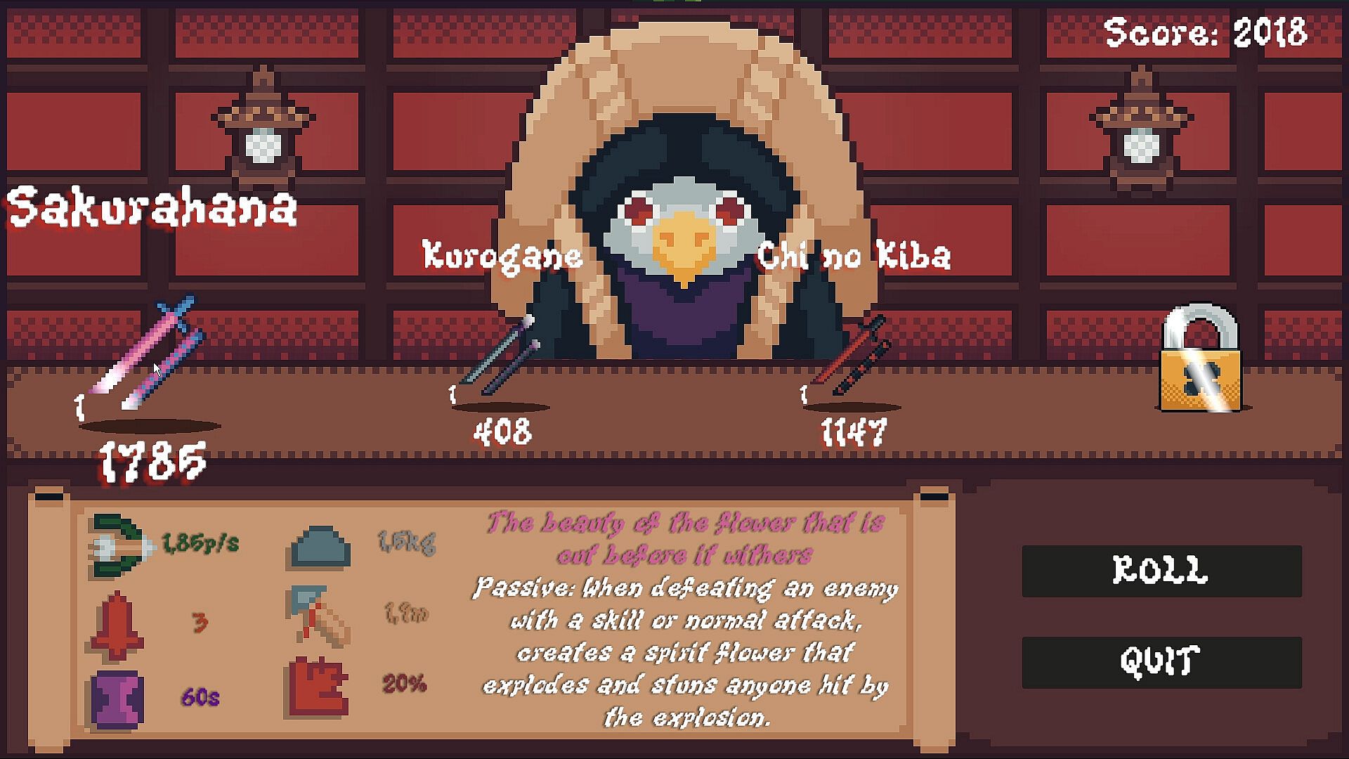 You are a Ronin bird advancing through a hostile world, destroying everything in your path to reach the cherry tree that guards your oath.