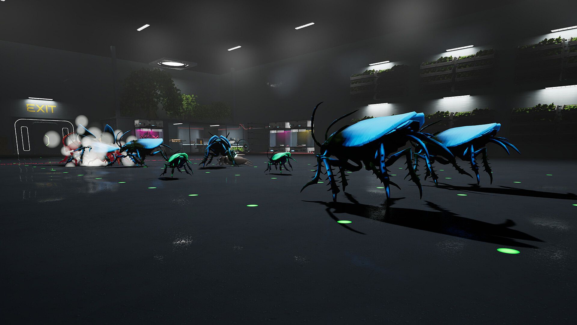 • Dark sci-fi lab atmosphere