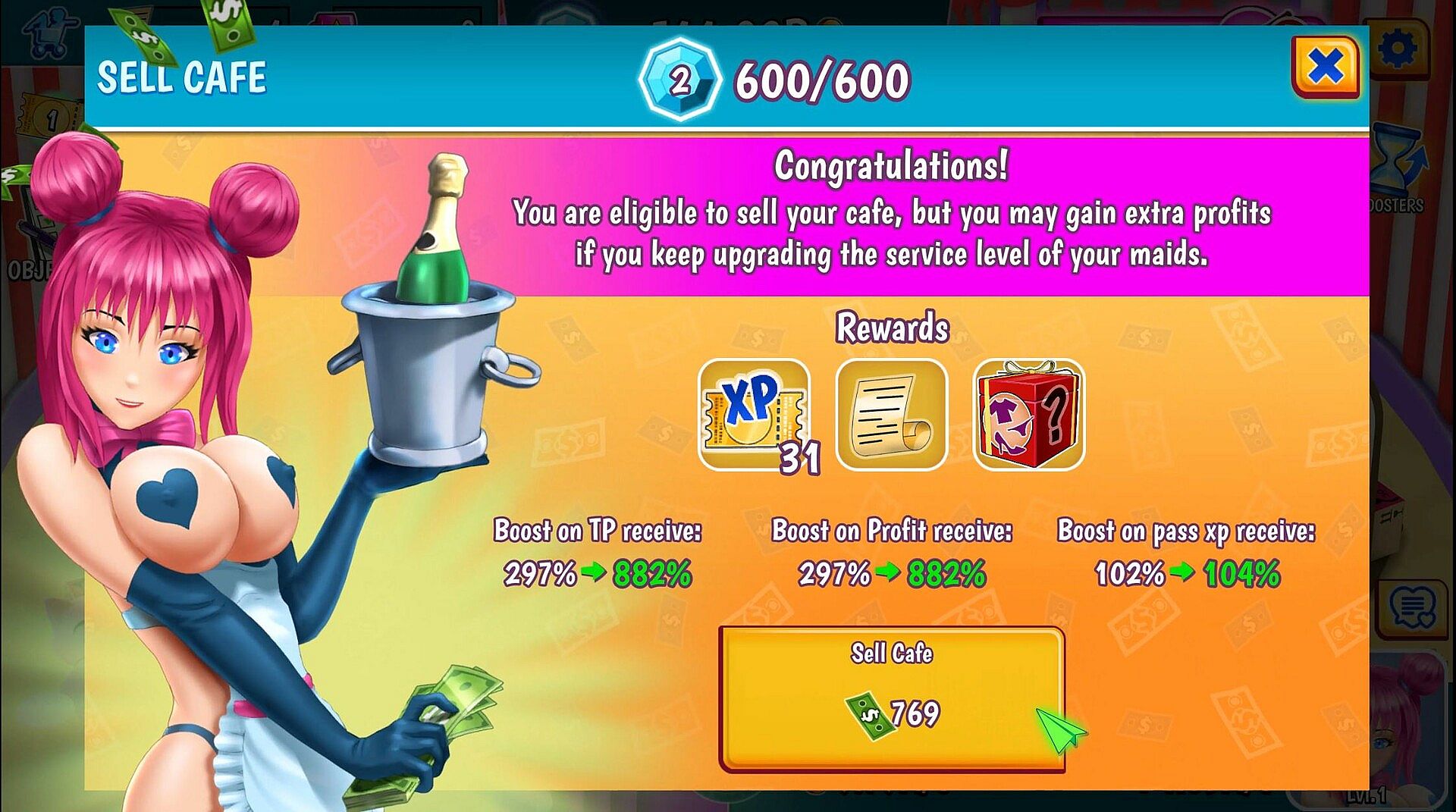 When your current cafe is successful enough, you can sell it to another investor and receive a big profit in return that you can spend further developing your brand. Your decisions determine how much more efficiently your next company will earn money.