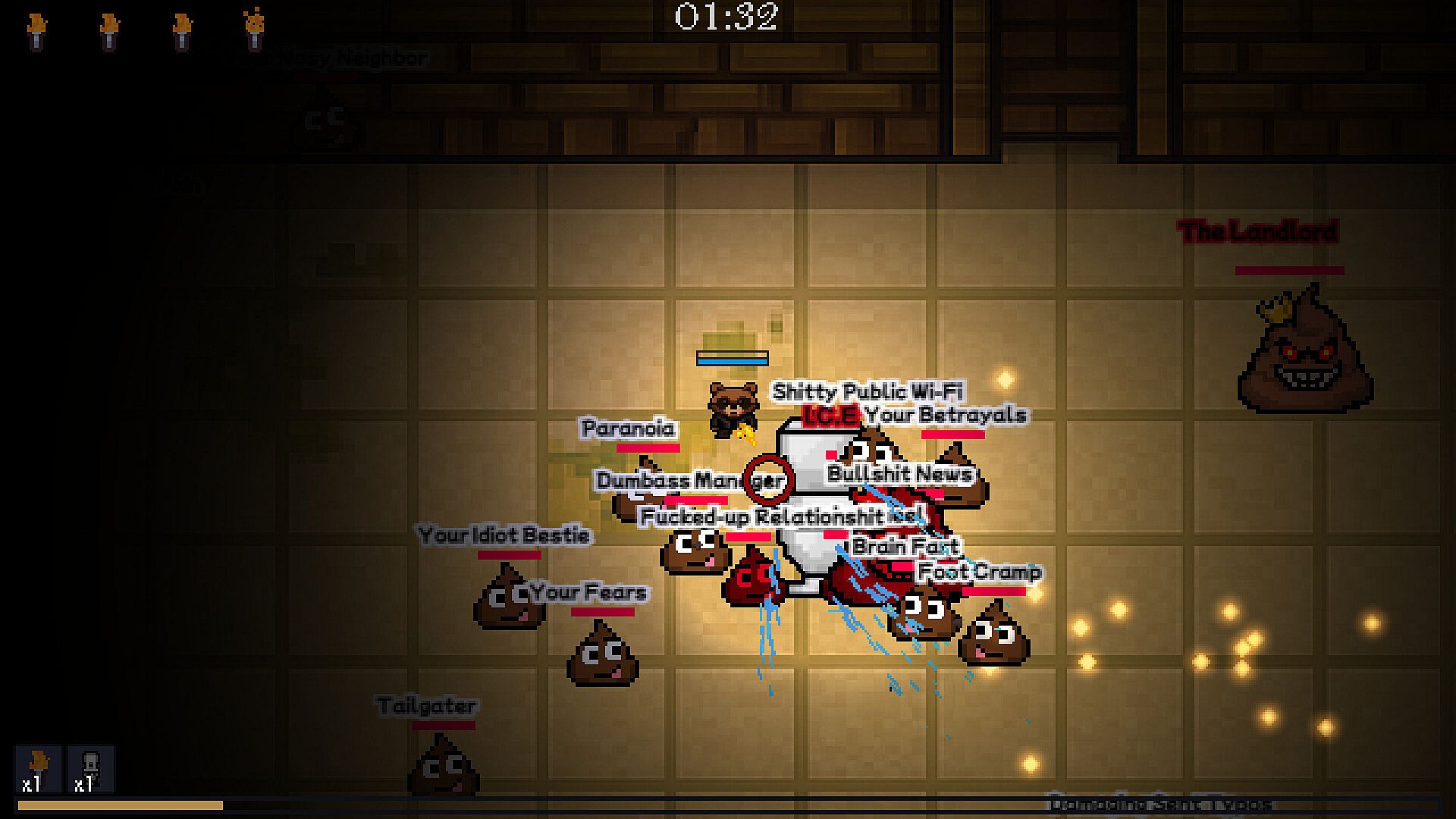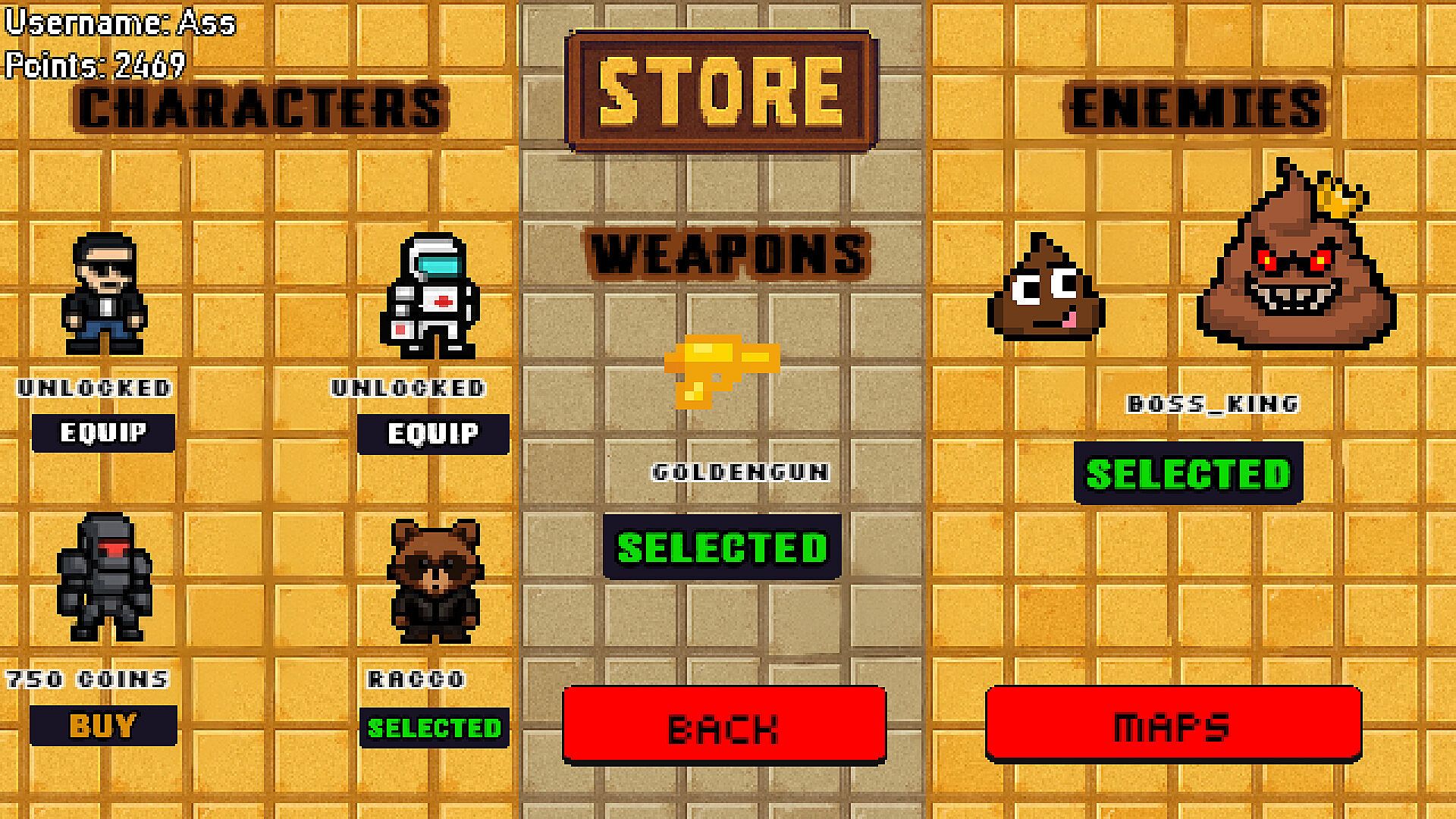 Call of Dookie is a fast-paced top-down arena survival shooter with pixel-art visuals, dark humor, and pure chaos. Armed with a water gun, you’ll fight endless waves of ridiculous enemies, unlock new characters, weapons, and maps, and see how long you can survive the mess.