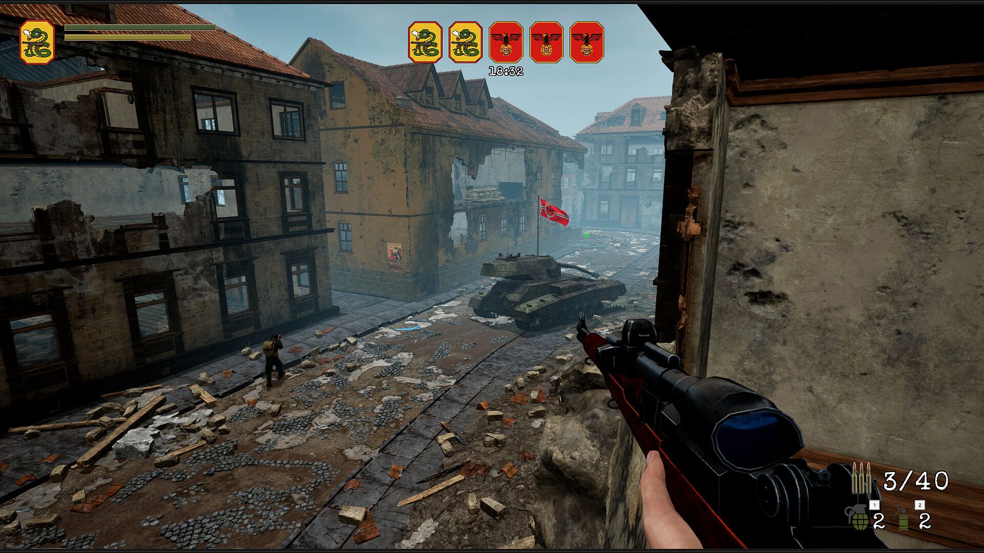 Take on different roles on the frontline, such as infantry, sniper, machine gunner, or bazooka, each with a clearly defined tactical purpose. Use historical weapons, take advantage of the terrain, and work together with your team to capture and hold strategic objectives.