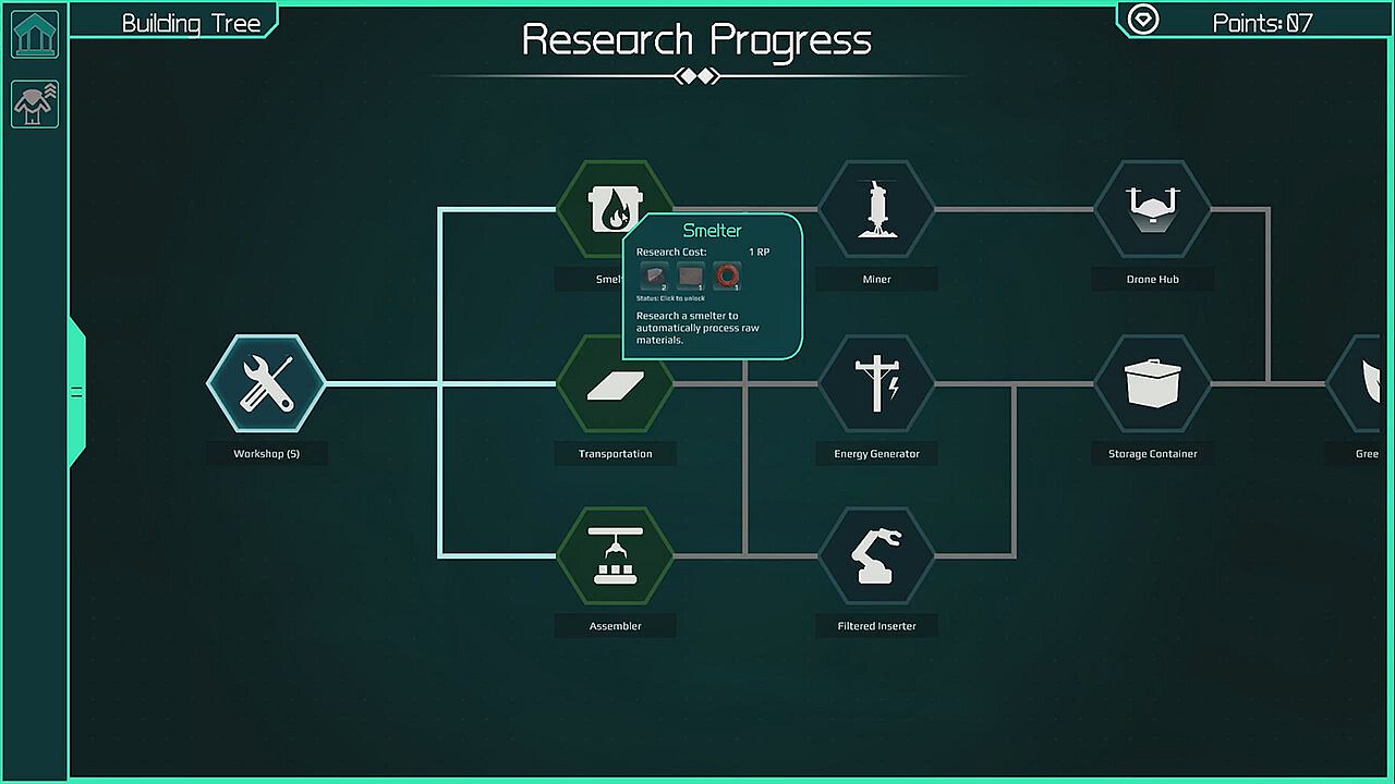 Construct an outpost that caters to both the needs of your survival and your desire for a personalized base. Utilize the various resources at your disposal to build a base of operations that provides refuge for you and your machinery. Establish many modular rooms that can be tailored to your liking, with specialized facilities aimed at automating the crafting and harvesting processes.