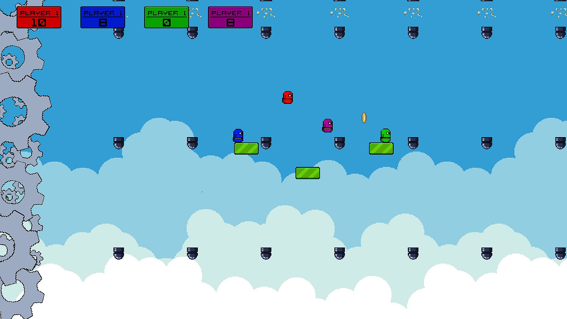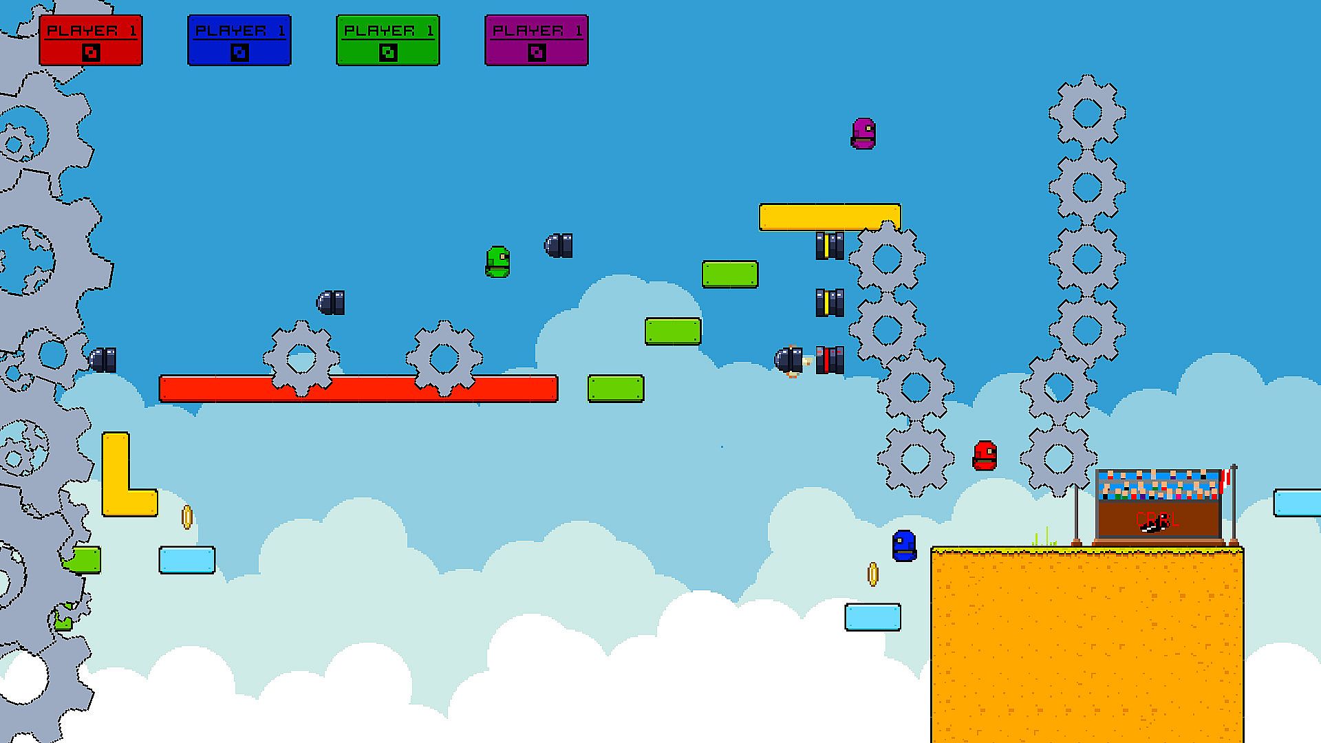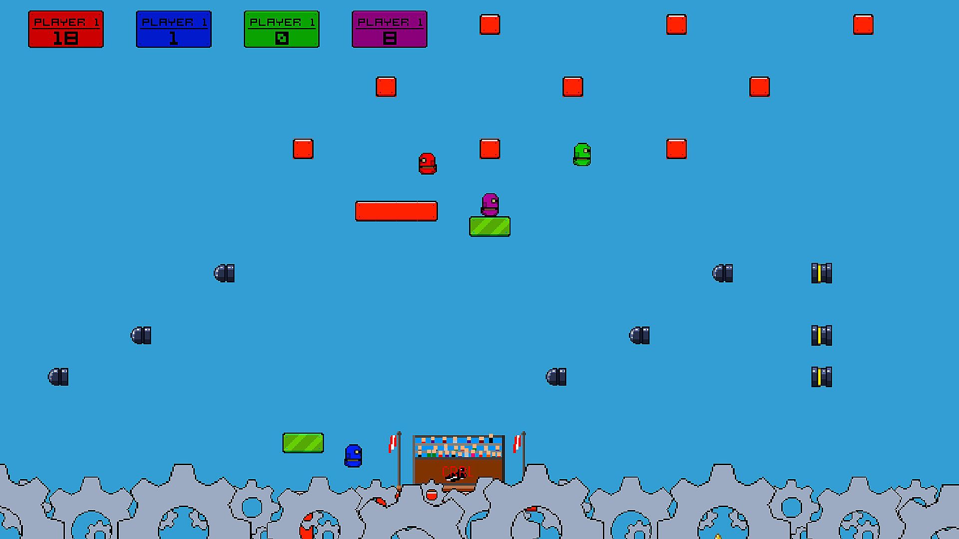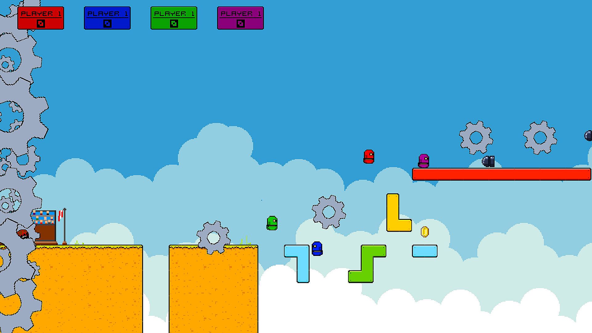 Canadian Robot Racing League is a 1-8 person local multiplayer platformer and survival challenge. Inspired by classic platformers of the past and designed as a party game to be picked up and enjoyed by anyone. Controls are simple but the levels will test your platforming skills. Each level has a wide range of deadly hazards you will need to avoid, but don't fall behind or the Gear-Wall will crush you instead.
