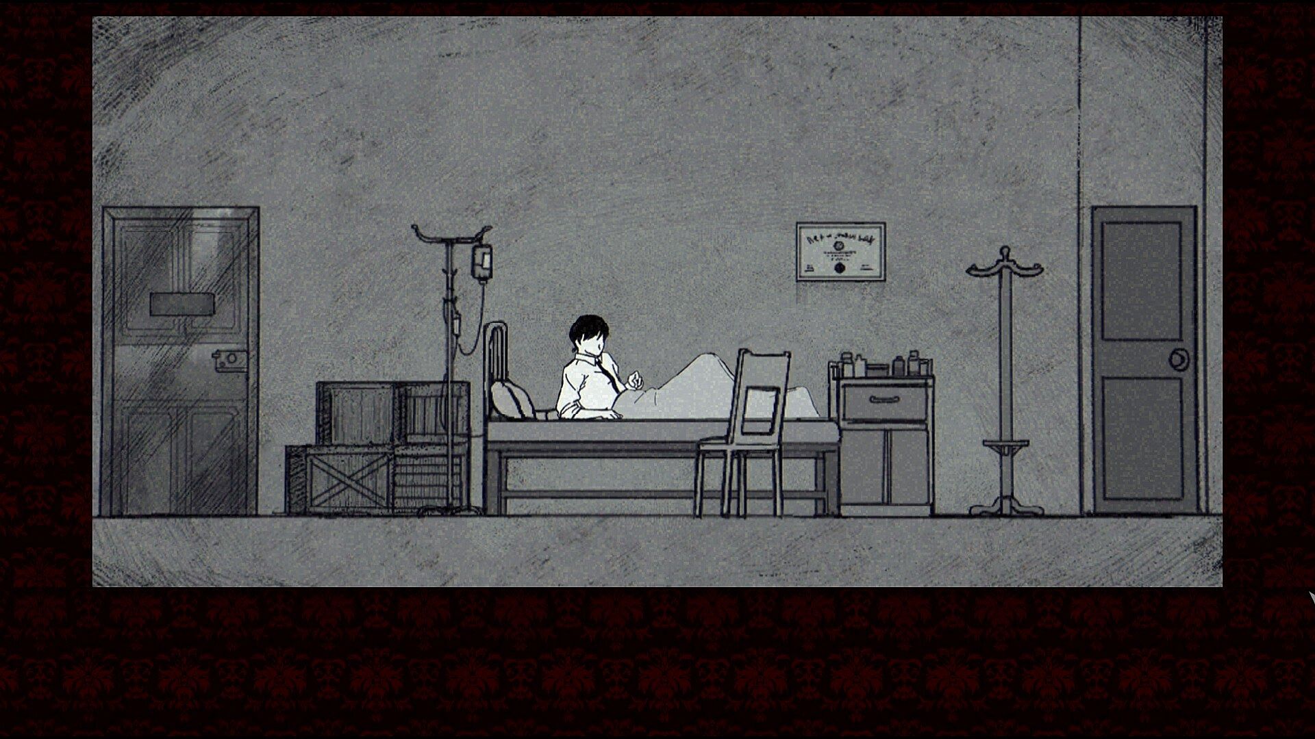 • Black and white hand-painted art, set in the 70s of a parallel universe.