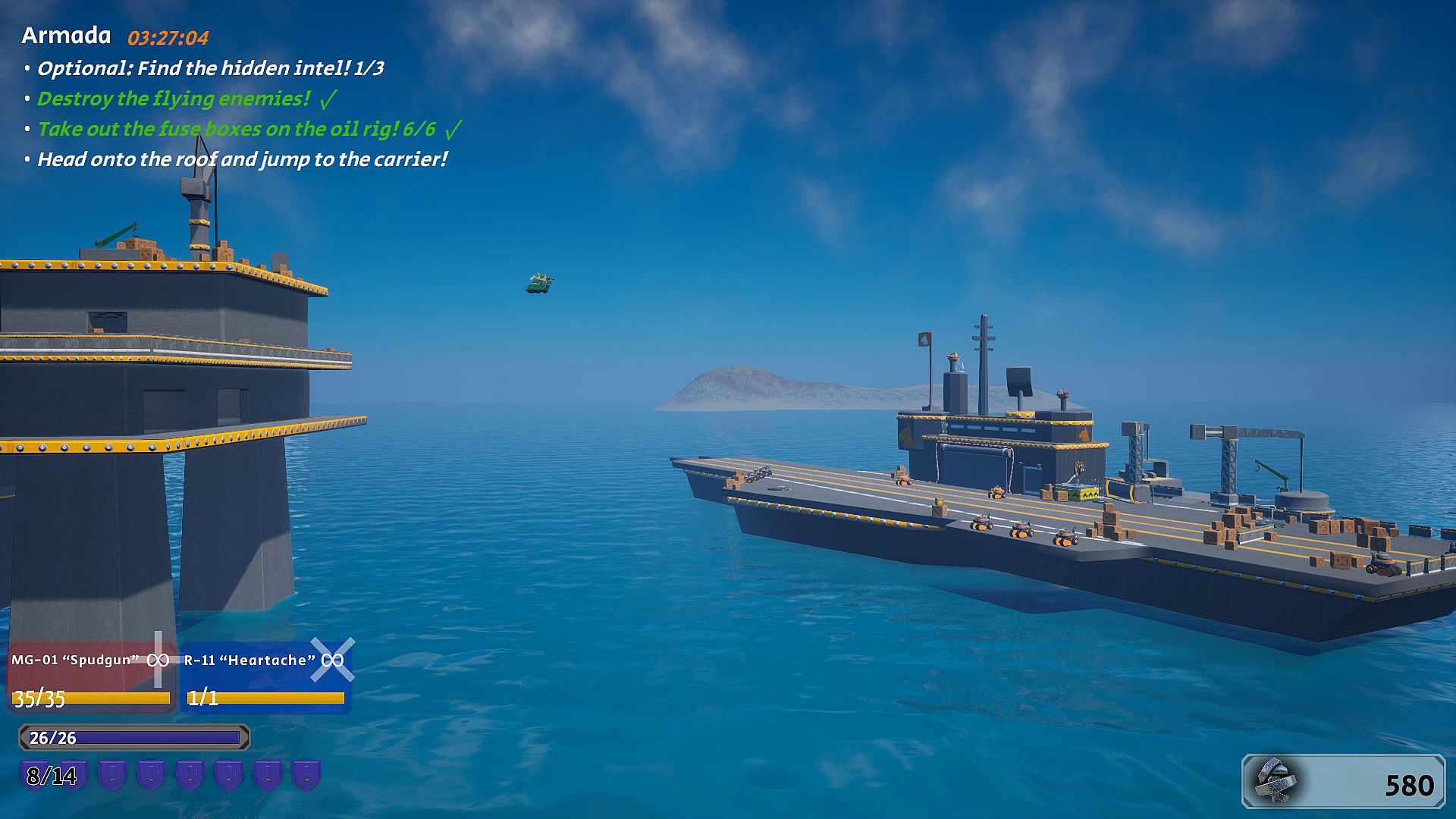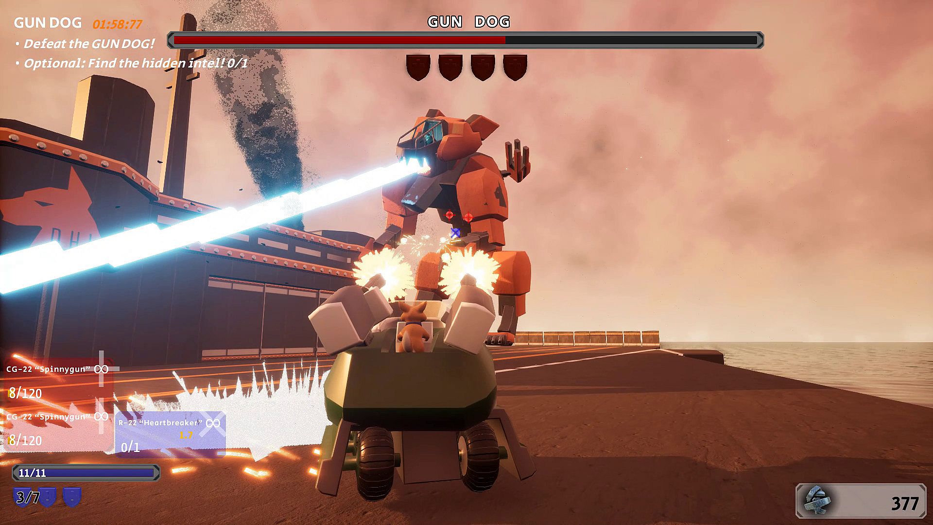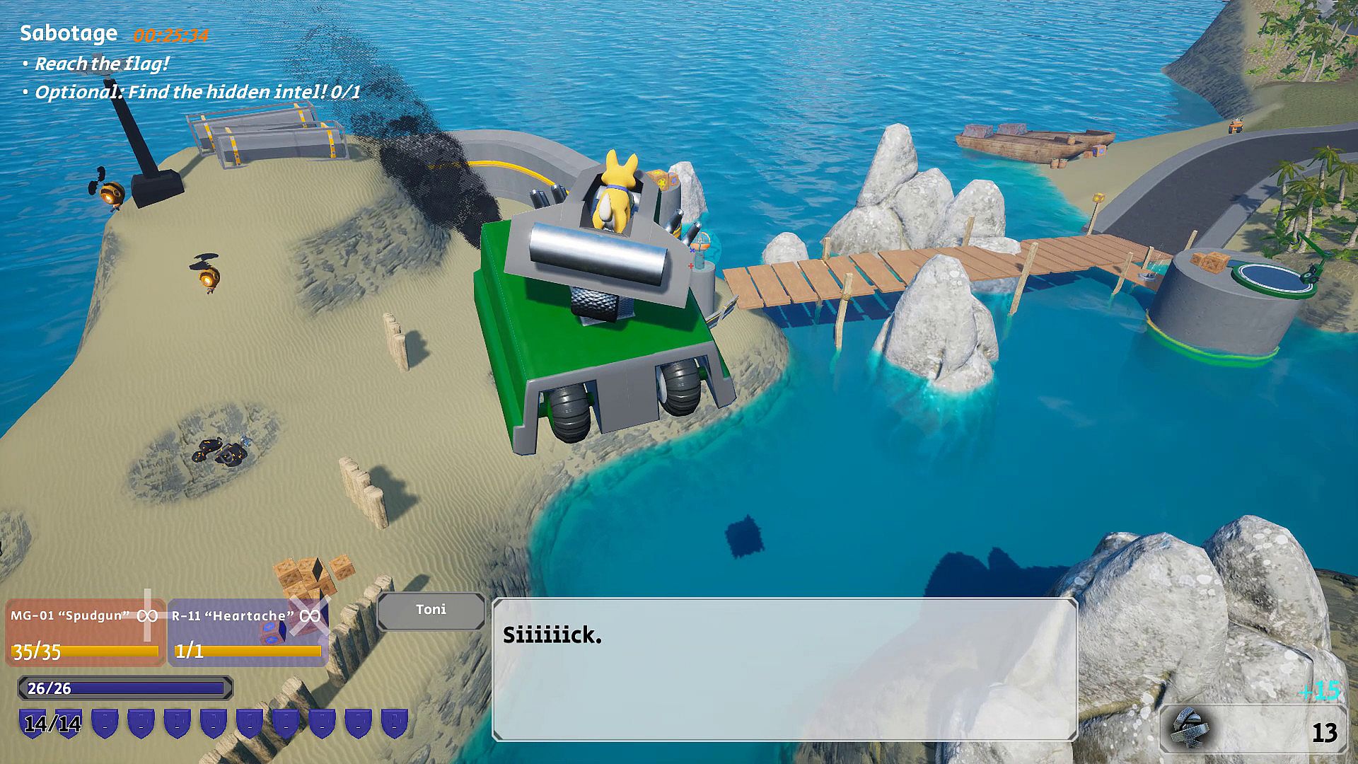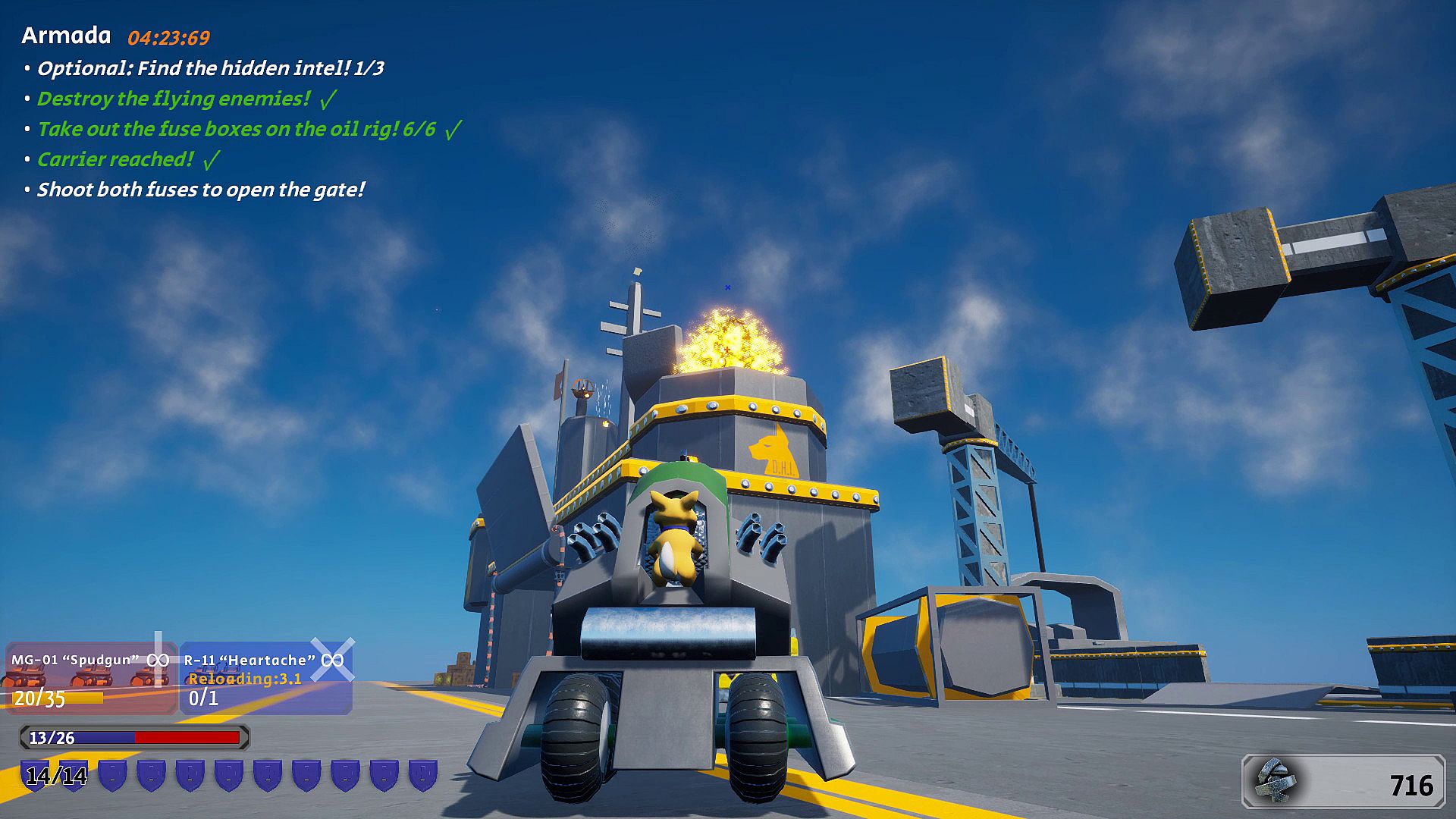 Speed through an explosive, bite-sized adventure and unlock new abilities! Pick up the wreckage of your enemies to build and equip new parts. Then, use their own machines to blow up their stuff!