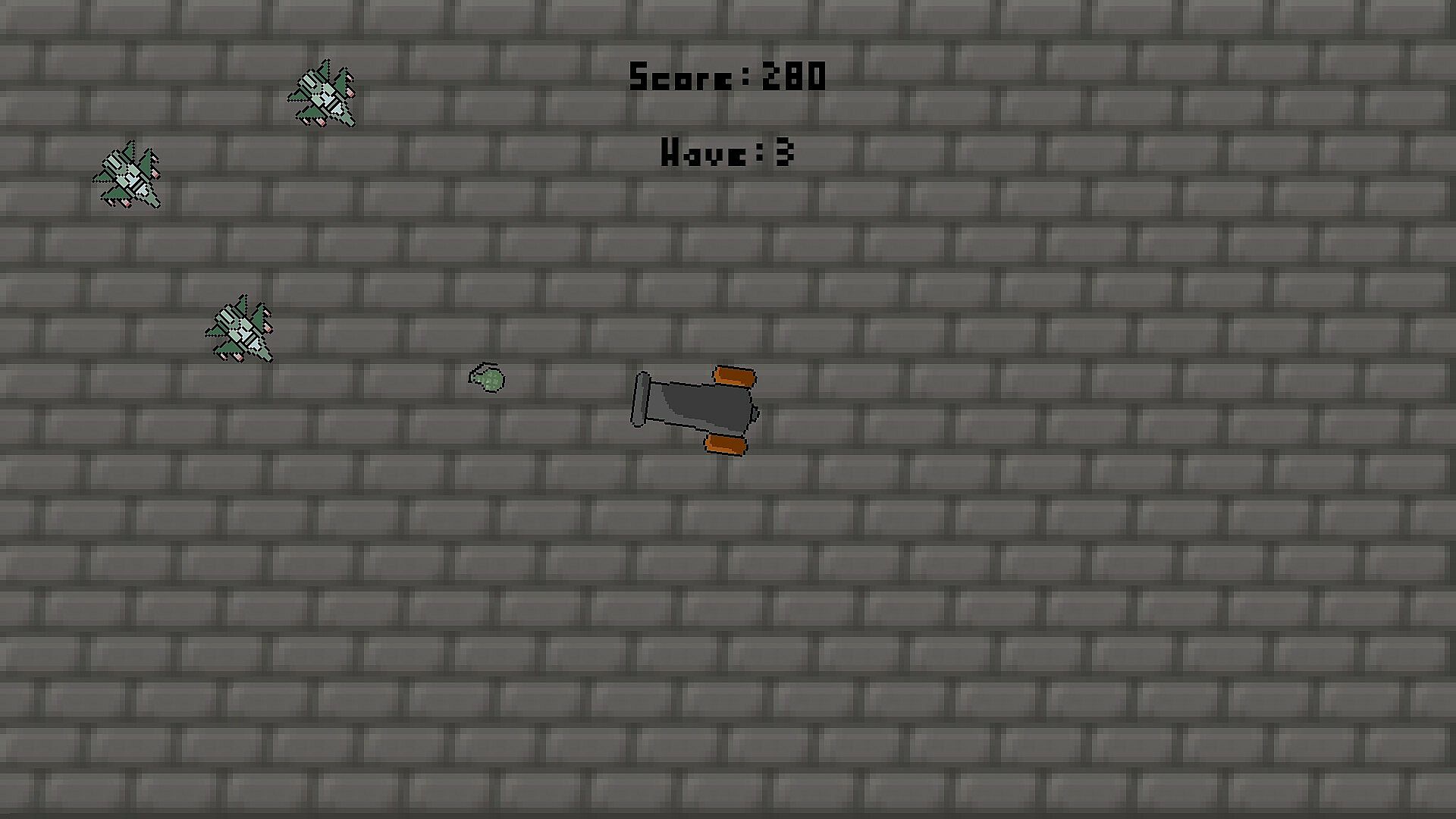 Cannoneer is a 2-dimensional, top down shooter game. You bomb planes to earn treasure and get new high scores. You can use that treasure to purchase skins and use those in game. The main gimmick of your cannon is that you only have one bomb. Every time the bomb leaves the screen you get it back. The cannon is stationary, but you can rotate in place at a set speed. The game mechanics include 30-second waves of planes that change direction and location every wave, speed increases per each wave, an explosive grenade that spawns after you shoot 15 times, and intense situations coupled with high-speed gameplay. You can track your best scores with the scores tab in the menu, and compete with your friends to get the best score. Good luck!
