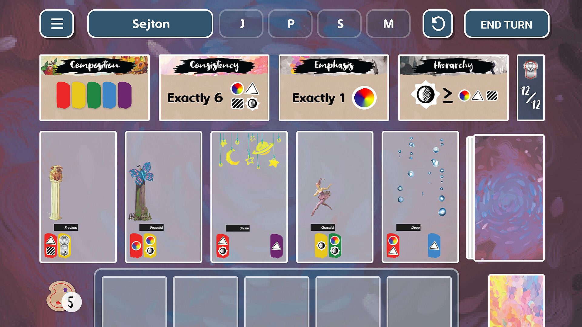 The game features stunning artwork on each card, designed to inspire your creativity. Every decision shapes your painting, creating satisfying challenges for both new and experienced players.