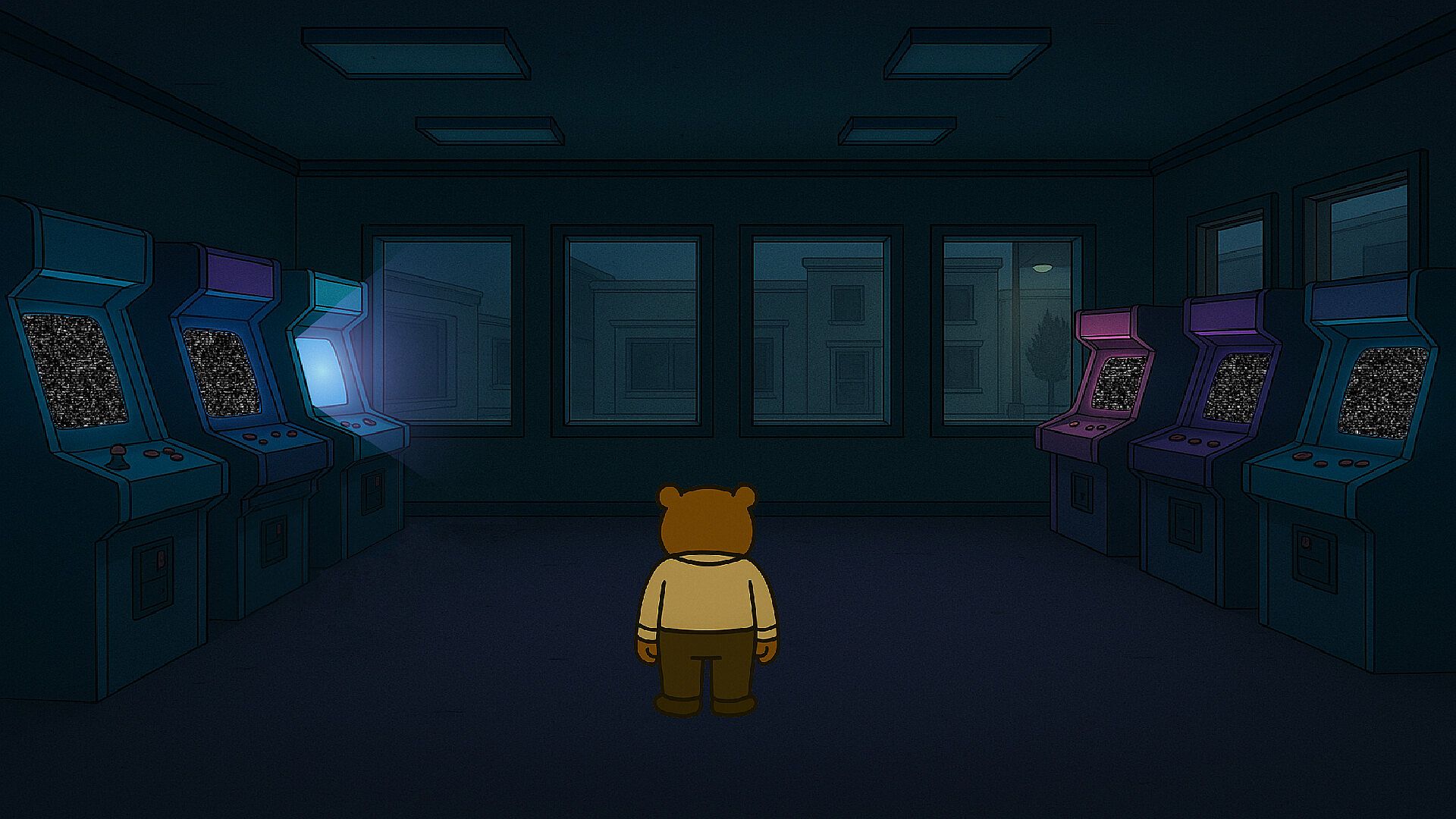 On the way to a job interview, it walks through abandoned streets, dirt, closed shops… a city without color, without life, without anything. Along the way, it discovers that the old CapiGames, an arcade abandoned for years, has reopened in the city center.
