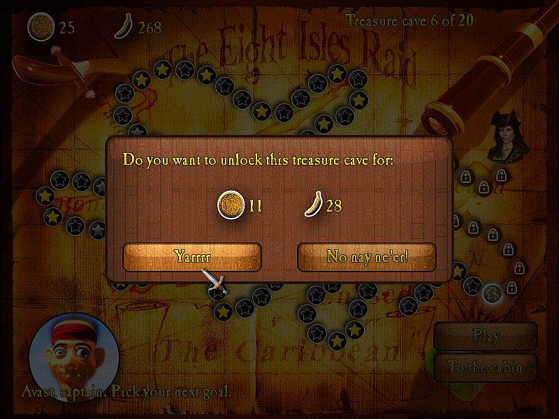 Pirate-themed casual strategy keeps players hooked with extras that test wits and reflexes. Clear every cave to claim victory and rise as the Caribbean's top pirate. Casual players who enjoy brain-teasing match puzzles find the perfect bite-sized sessions here.