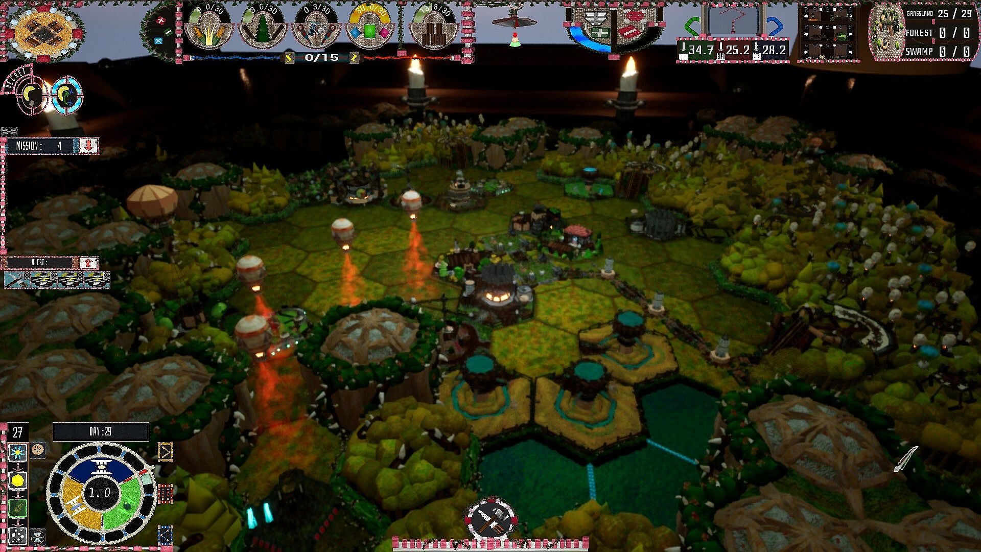 Prepare to face the climate of the different seasons which will modify the map (freezing water in winter, windswept desert in autumn, etc.) and affect the collection of resources.