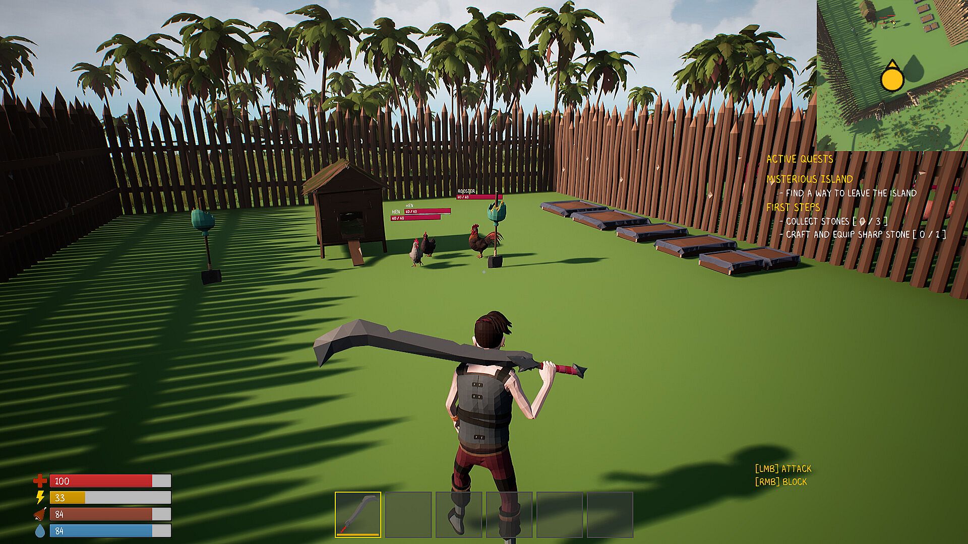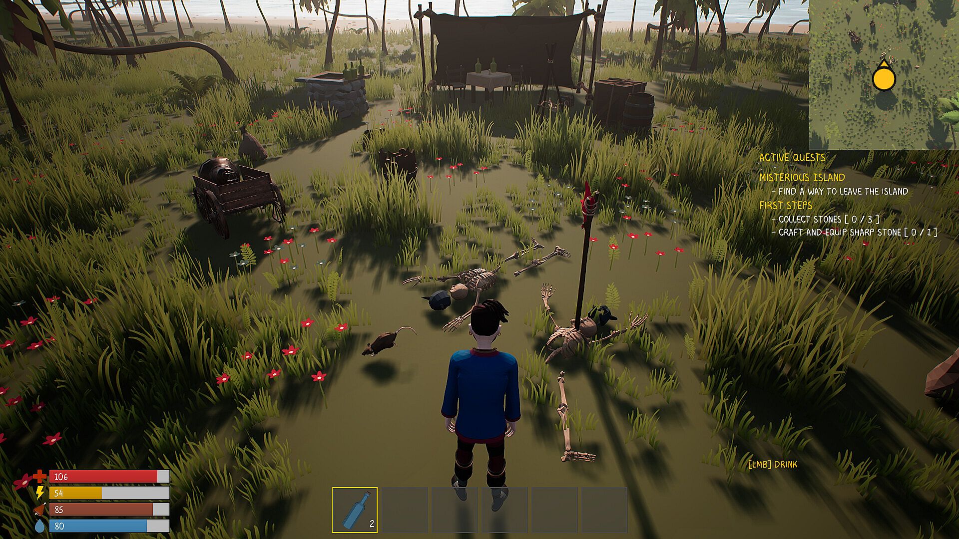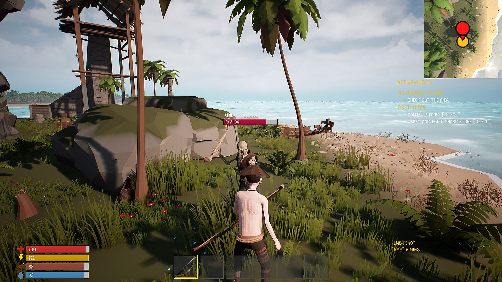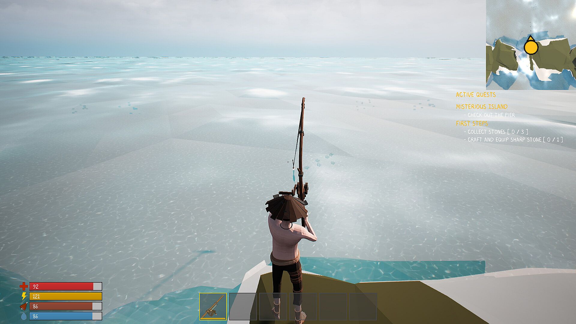 If you are hungry, the easiest way is to fish. Hunt, Fish, Trap, and Skin animals for food or kill to insert your dominance over the pacific islands.