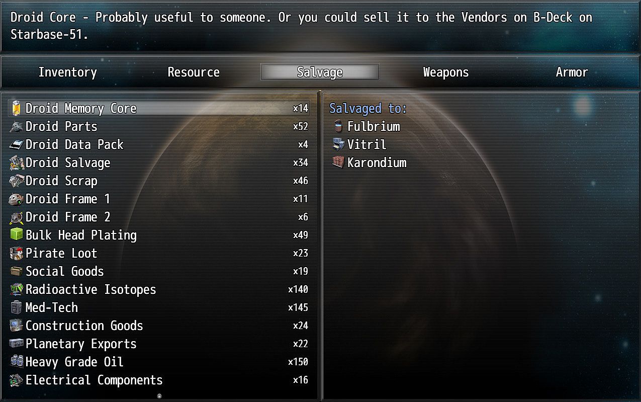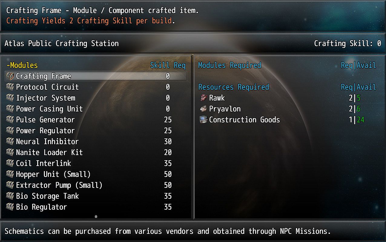 What we have now form's a solid backbone for the game to begin to grow. More systems, more bad guys, many more planets and derelicts for exploring.The scope for crafting is pretty much-unlimited thanks to SMO's excellent crafting schematic system.