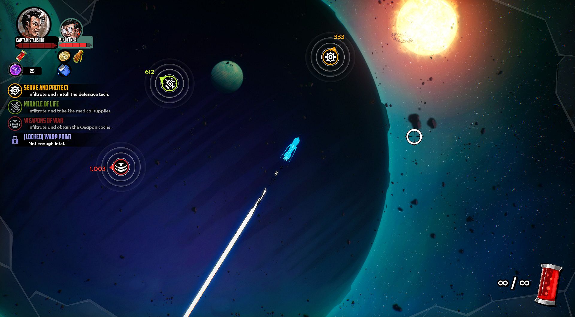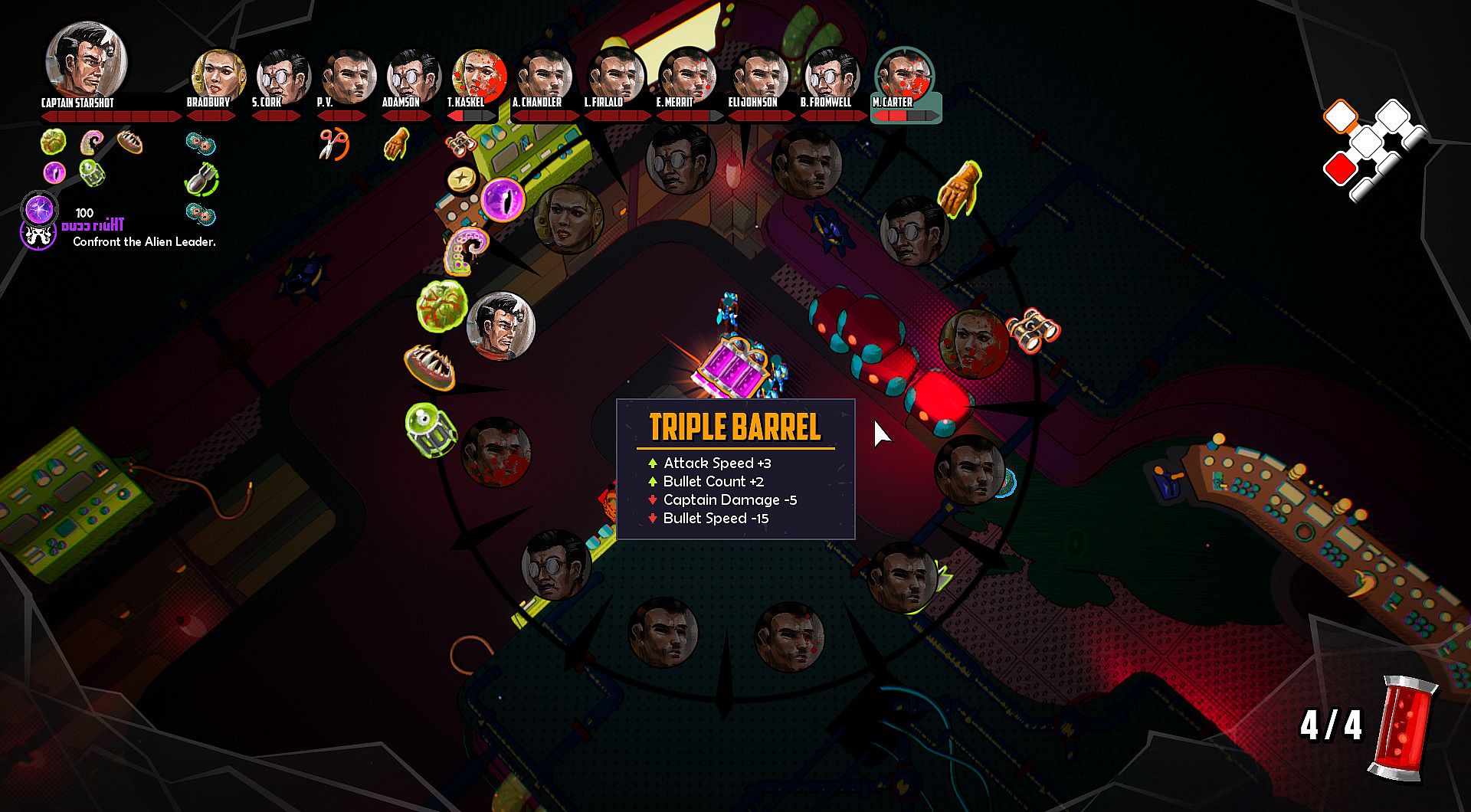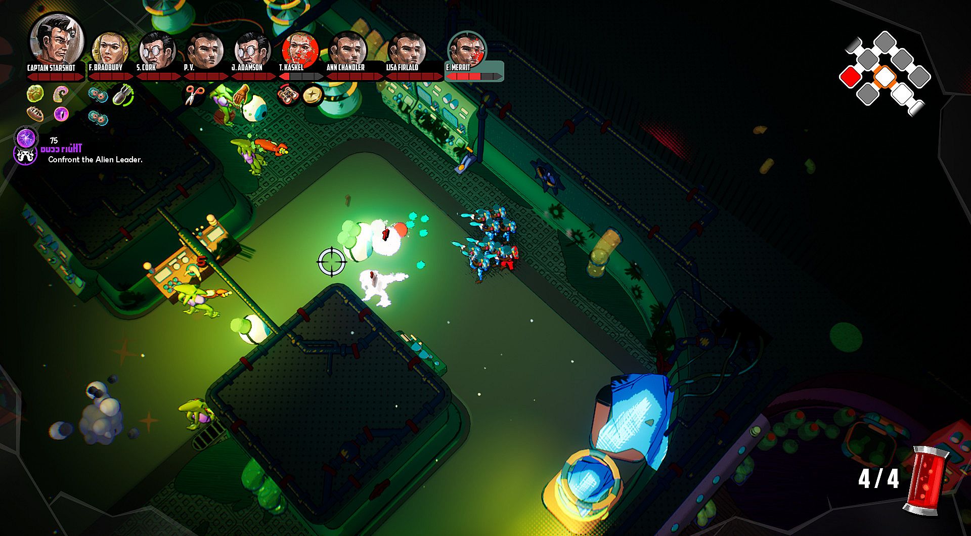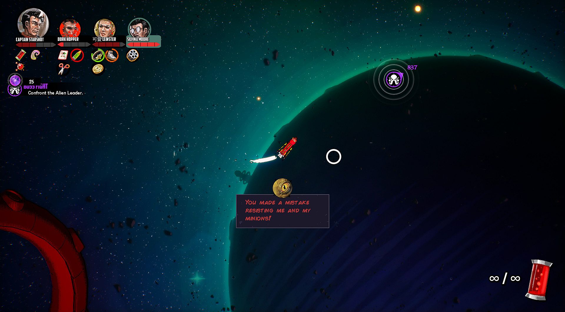 As Captain Starshot, you and your space crew are tasked with the mission to explore the galaxy in search of villainous aliens and to defeat their leader.