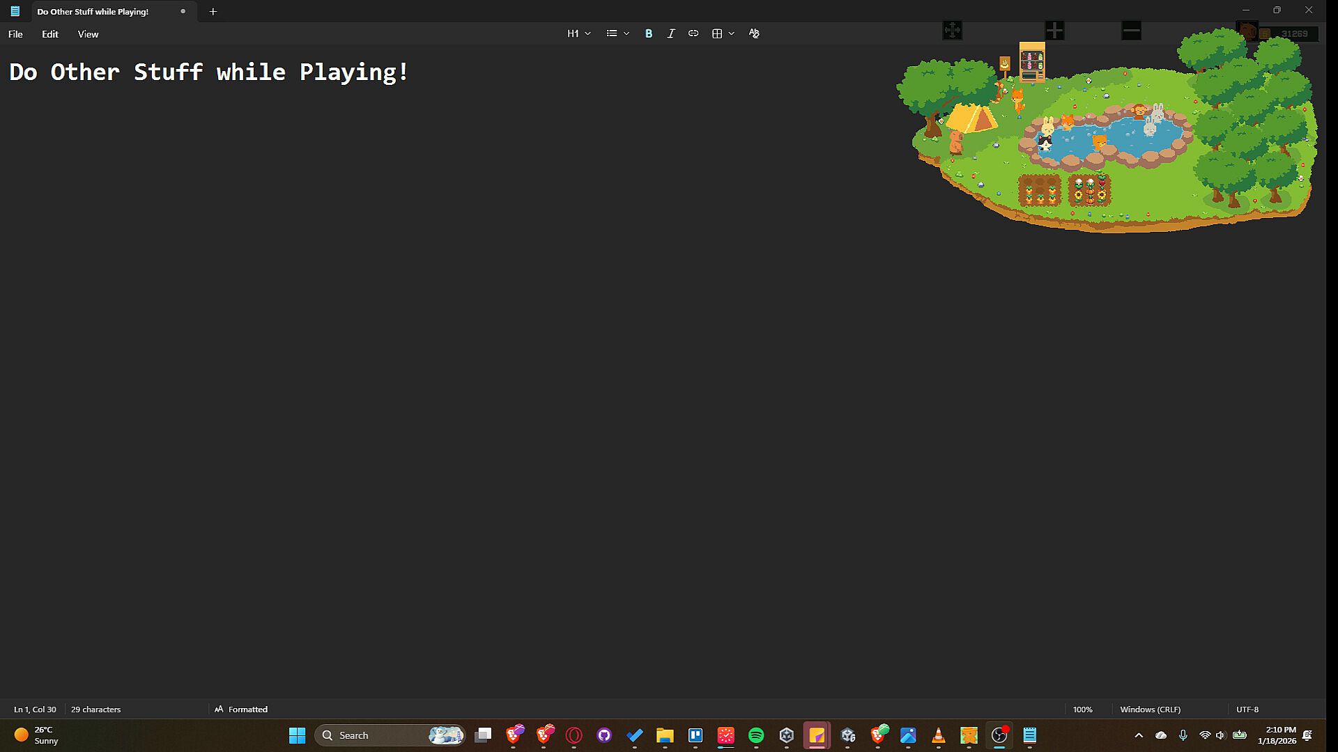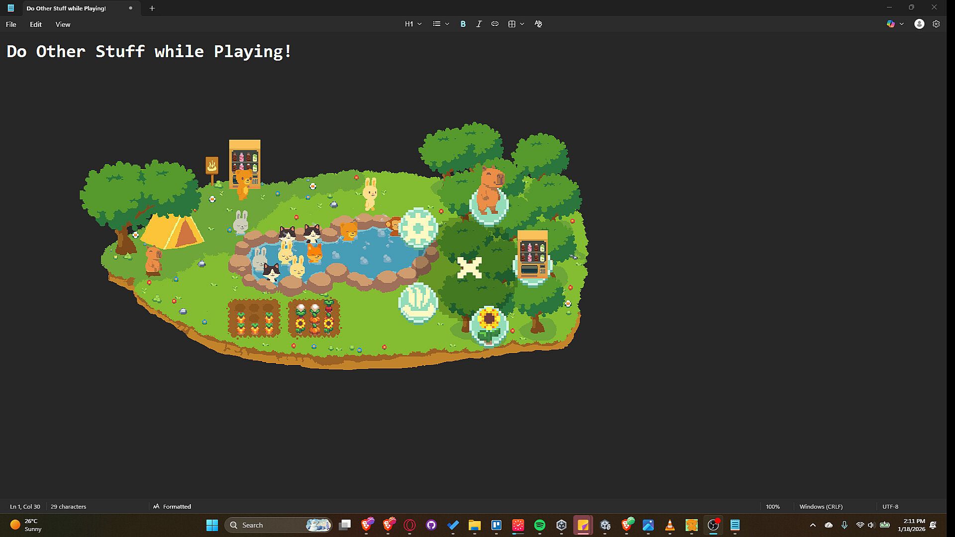 -Designed as a gentle desktop companion, Capy’s Hot Springs Haven stays quietly on your screen as a tiny floating island. Animals continue to visit, relax, and support your progress while you work, study, or unwind, letting you enjoy the cozy atmosphere without constant attention.