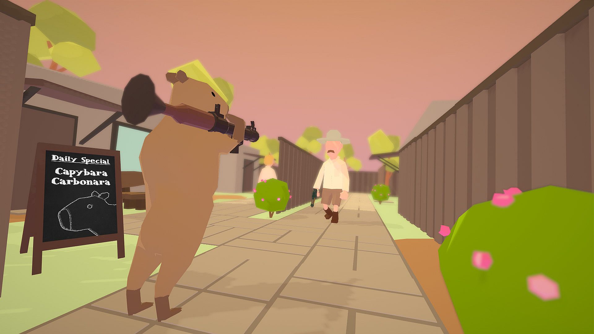 Capybara Carbonara is a whacky-physics-adventure, where you play as mischievous Capybara destined to cause mayhem and destruction all around. The Zoo you're trapped in is in the business of serving up animals to their visitors: Panda Pudding, Thai Green Tiger... Capybara Carbonara? Use a sandbox arsenal of wacky items, weaponry and vehicles to take on the Zoo Keepers, free the animals and just generally restore peace to the universe.