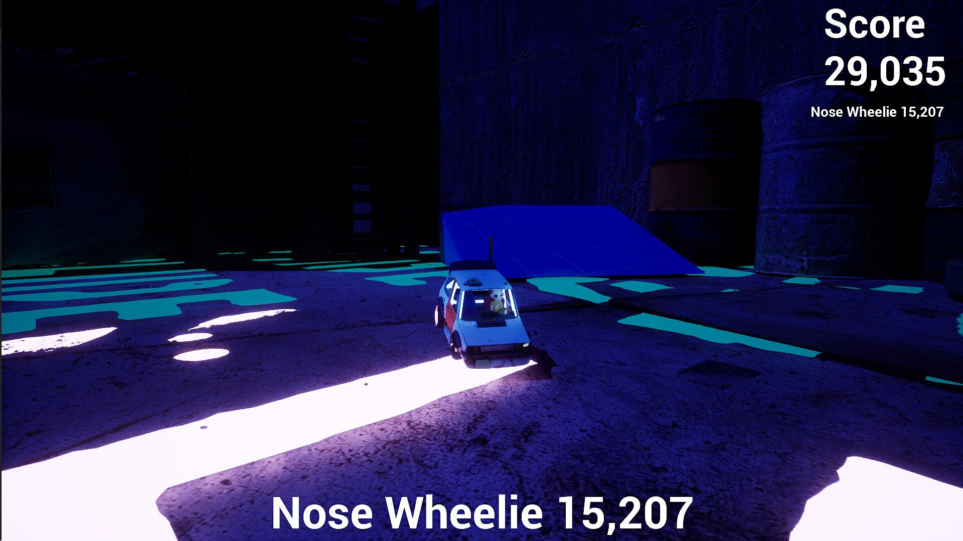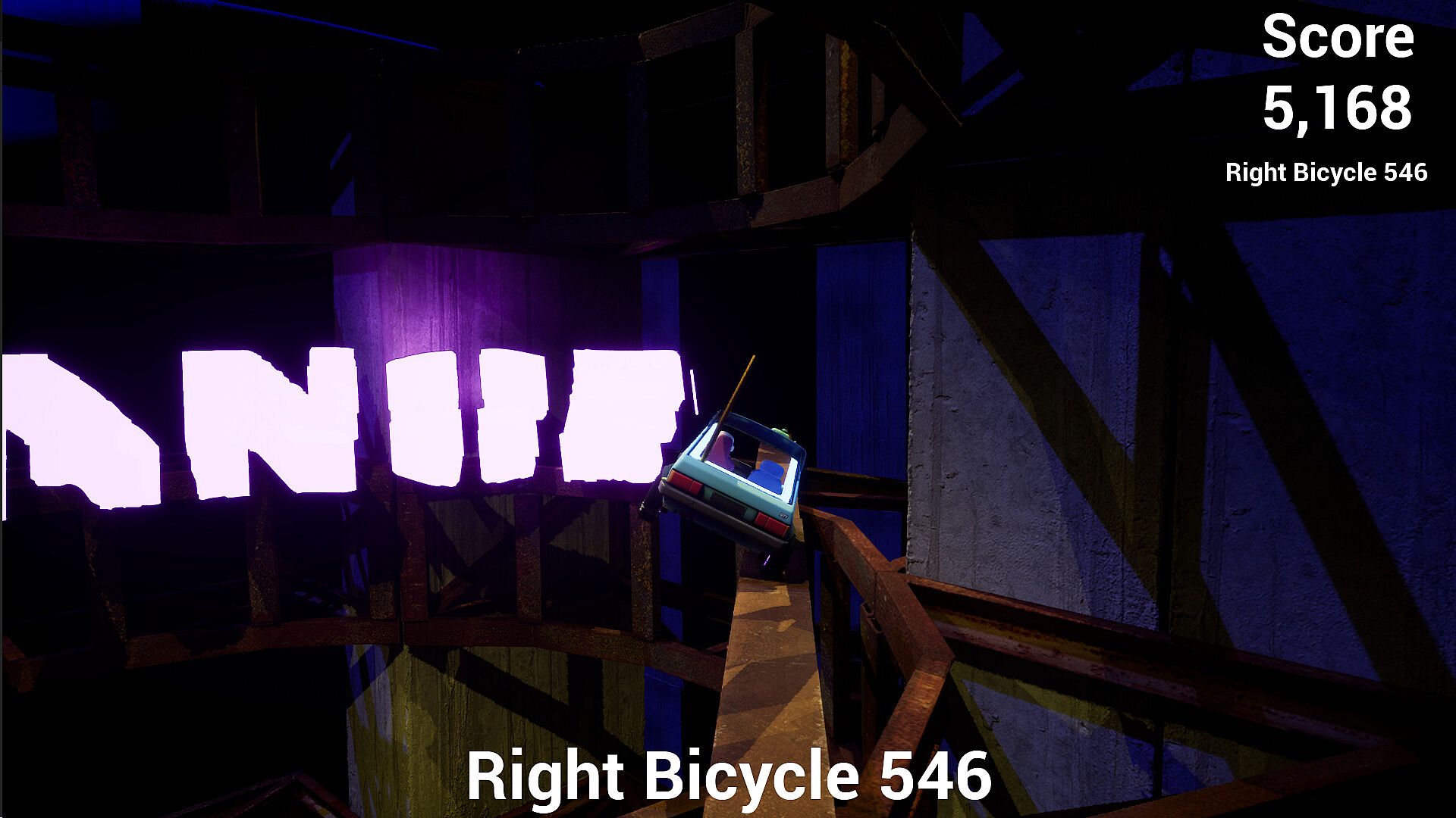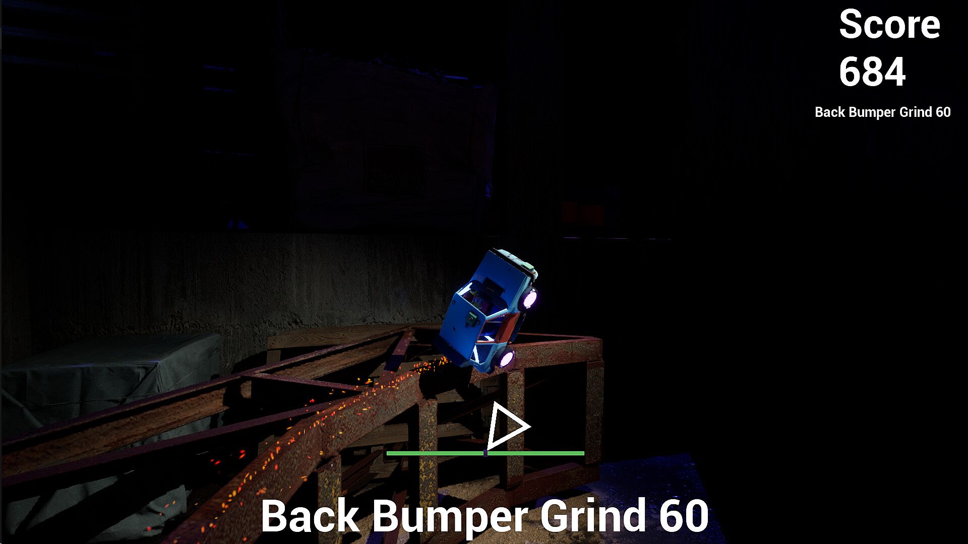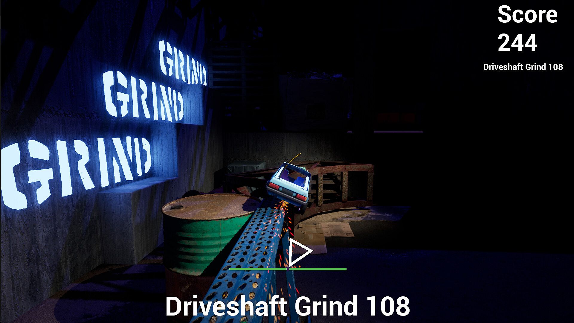 Jump on rails and grind your car. Keep the balance right or slide off the edge and crash.